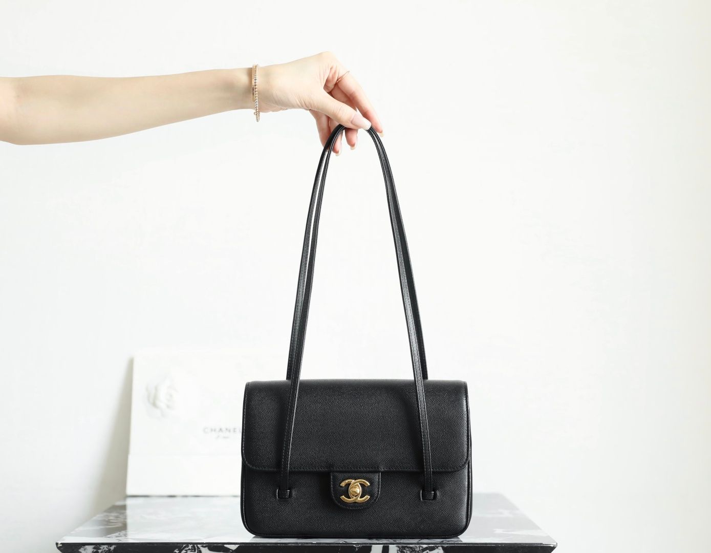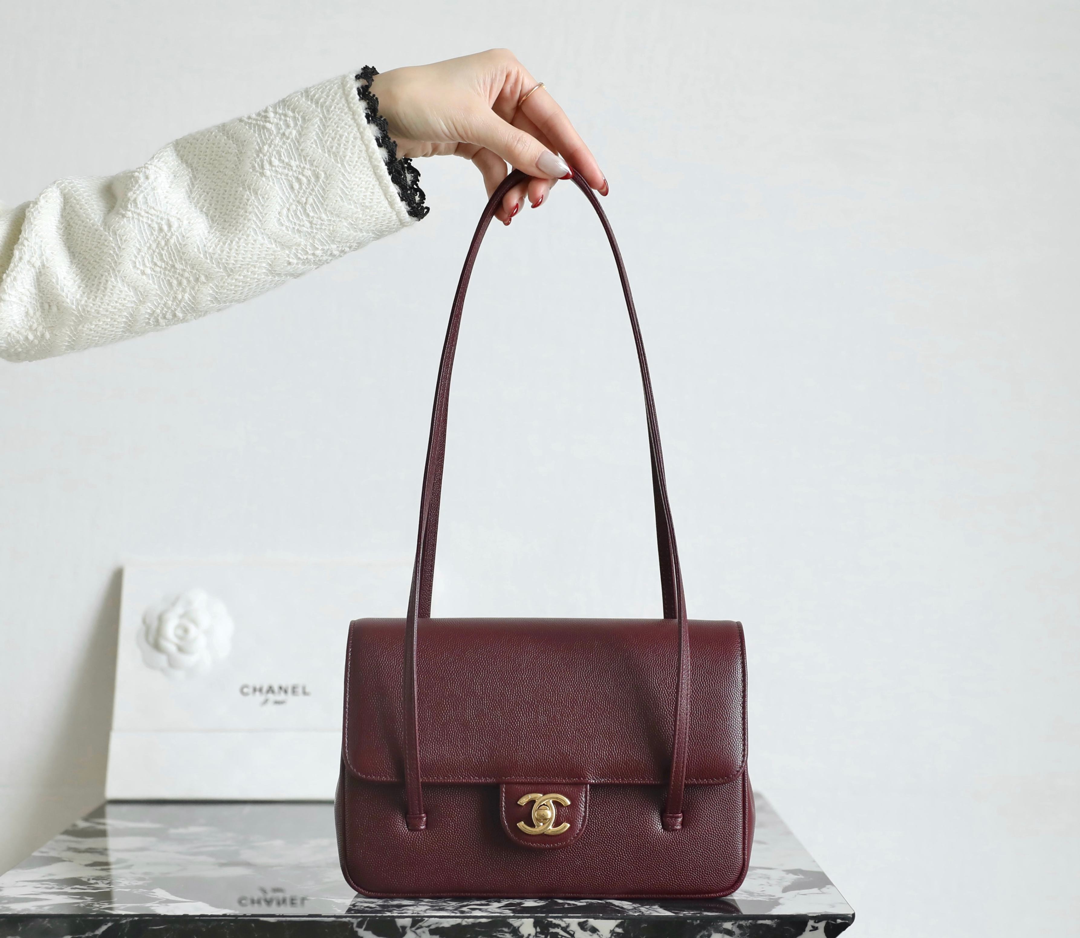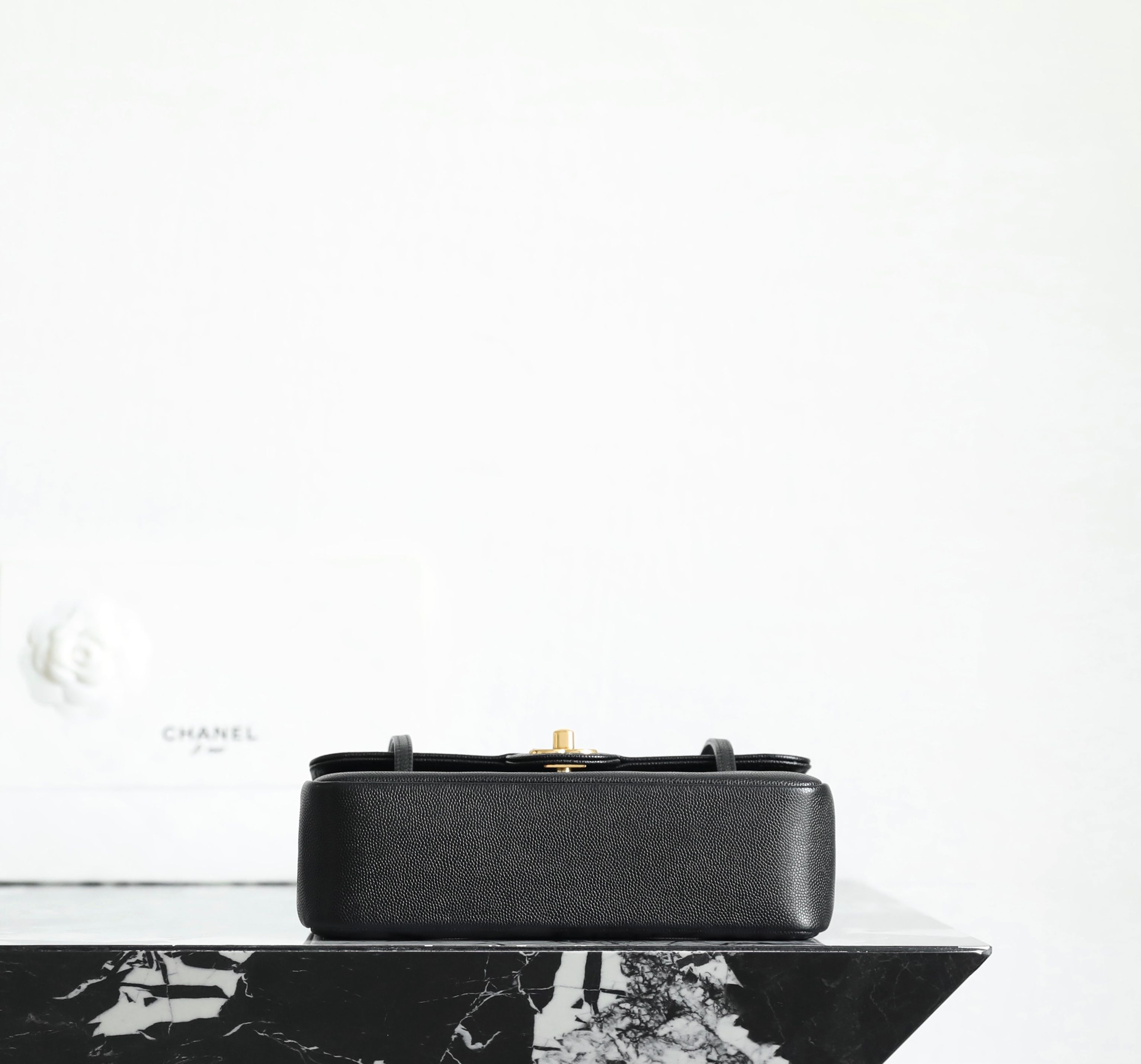 整體以俐落小巧的包型呈現,搭配經典雙 C 金屬標誌,低調卻極具辨識度。