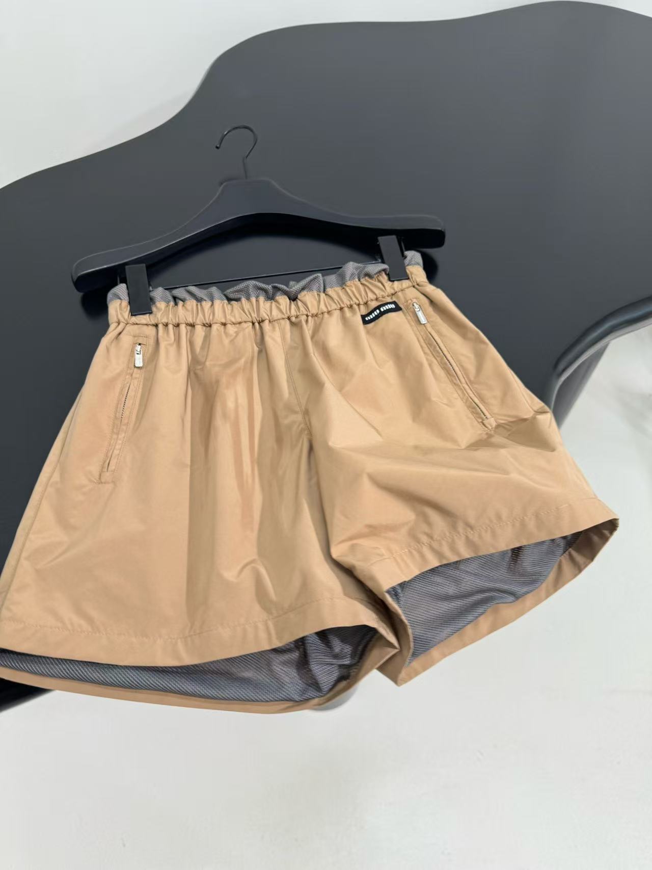 這件短褲的材質真的非常講究!它使用了府綢質感材料,摸起來細膩、滑順,而且穿起來輕盈又挺括,完美展現了品牌的工藝水準。內襯還有灰色網狀襯裡,不僅增加了透氣性,穿起來也更舒適,完全是那種會讓你愛不釋手的頂級質感。