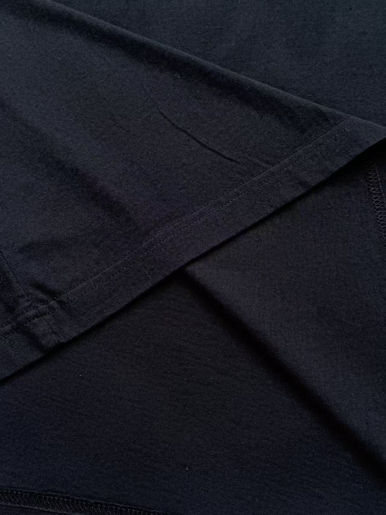 這款 T 恤在細節處理上展現了極致的職人規格。採用了高品質的高克重純棉材料,經過特殊的磨毛處理後,呈現出溫潤且紮實的手感,完美中和了暗黑設計帶來的銳利感。