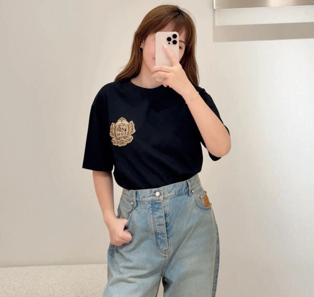 2024秋冬新品 L家狗狗系列Damier提花刺繡章仔短袖