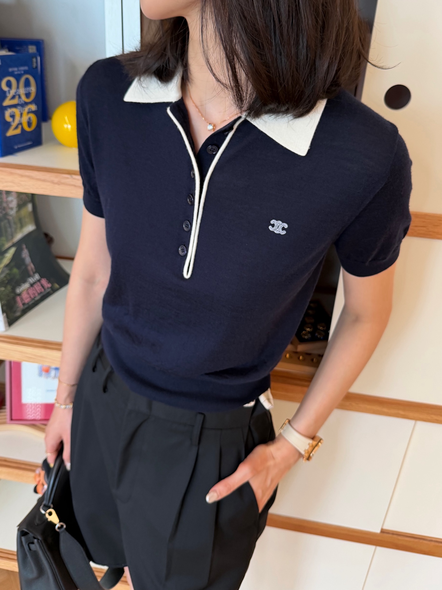 2026春夏新品 CE家 藏藍色Polo針織短袖
