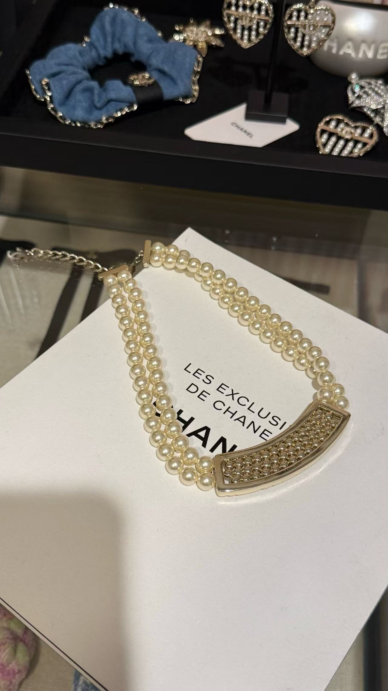 2025秋冬 C家 菱格方塊雙層珍珠項鏈