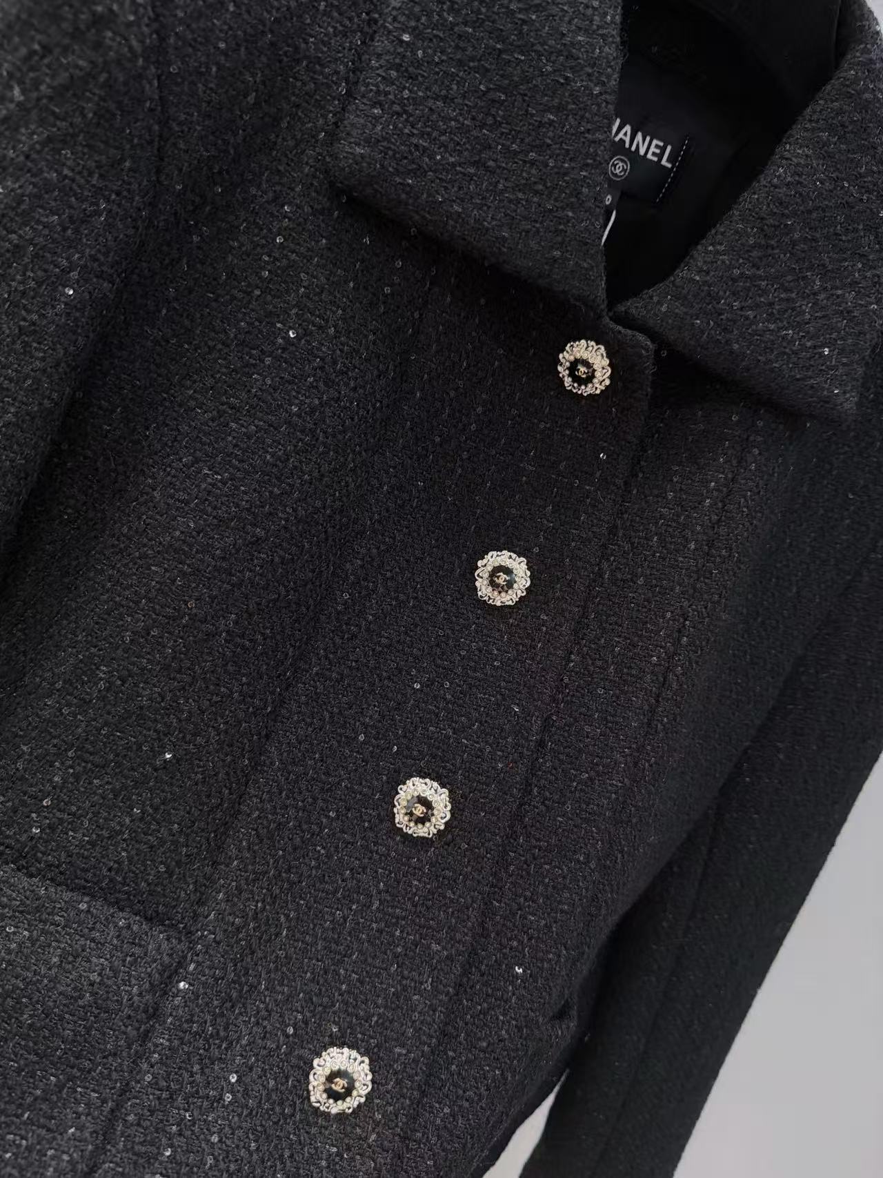 經典小香風輪廓,直筒微修身版型,高腰線剪裁直接拉長比例,雙排標誌性雙C圓扣一扣上,貴氣瞬間到位!不管是搭半裙走優雅路線,還是配西裝褲走幹練名媛,都超級好看。