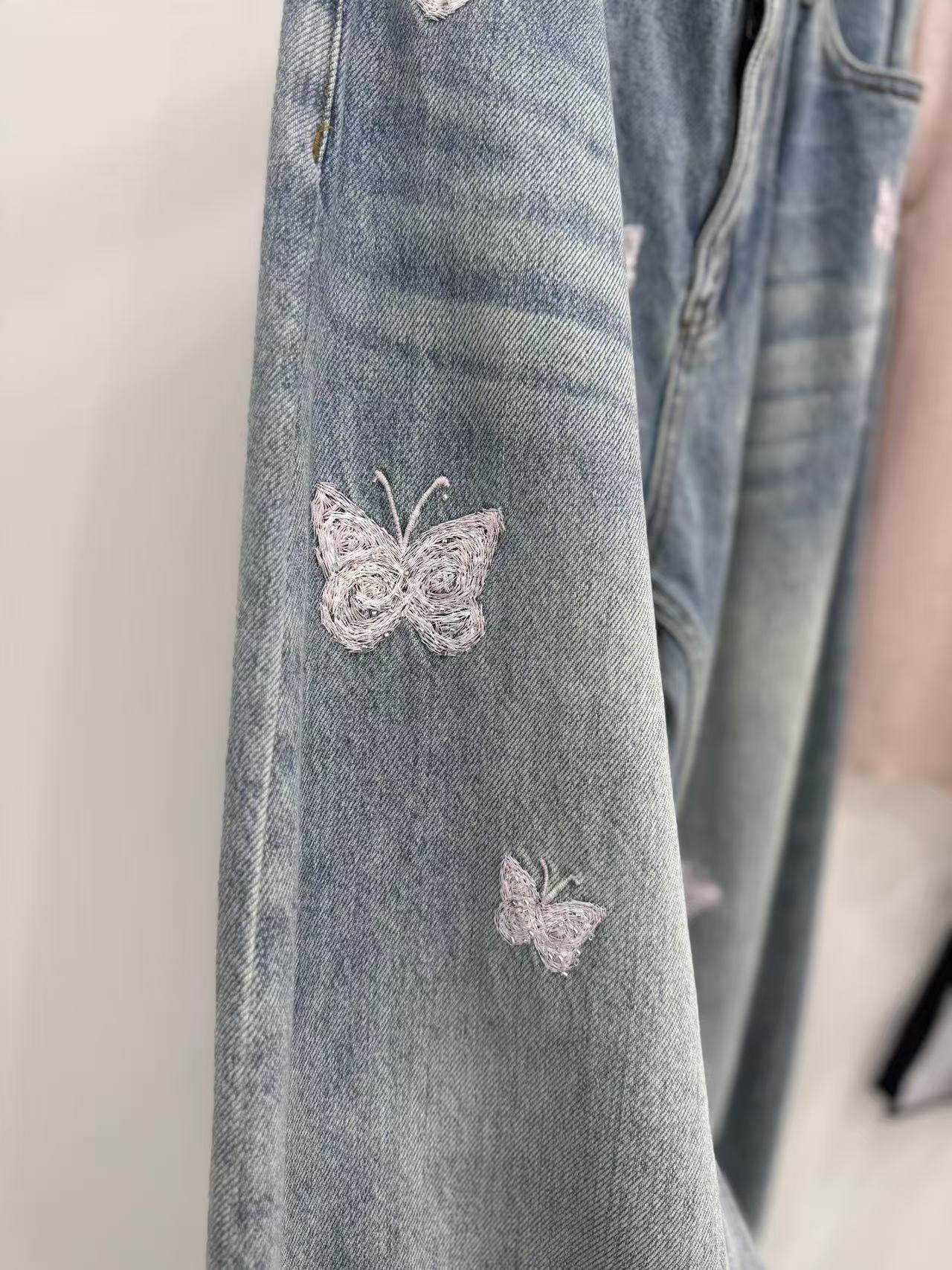 2026早春新品 Ann家 蝴蝶釘珠刺繡彎刀牛仔褲