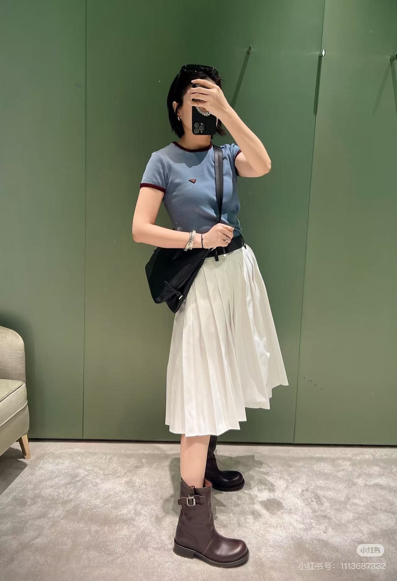 細緻的針織肌理結合修身剪裁,能穿出最迷人的「薄脆感」。左胸前點綴了標誌性的金屬倒三角徽標,在溫柔的針織基底上注入了一份硬朗的高級感。
