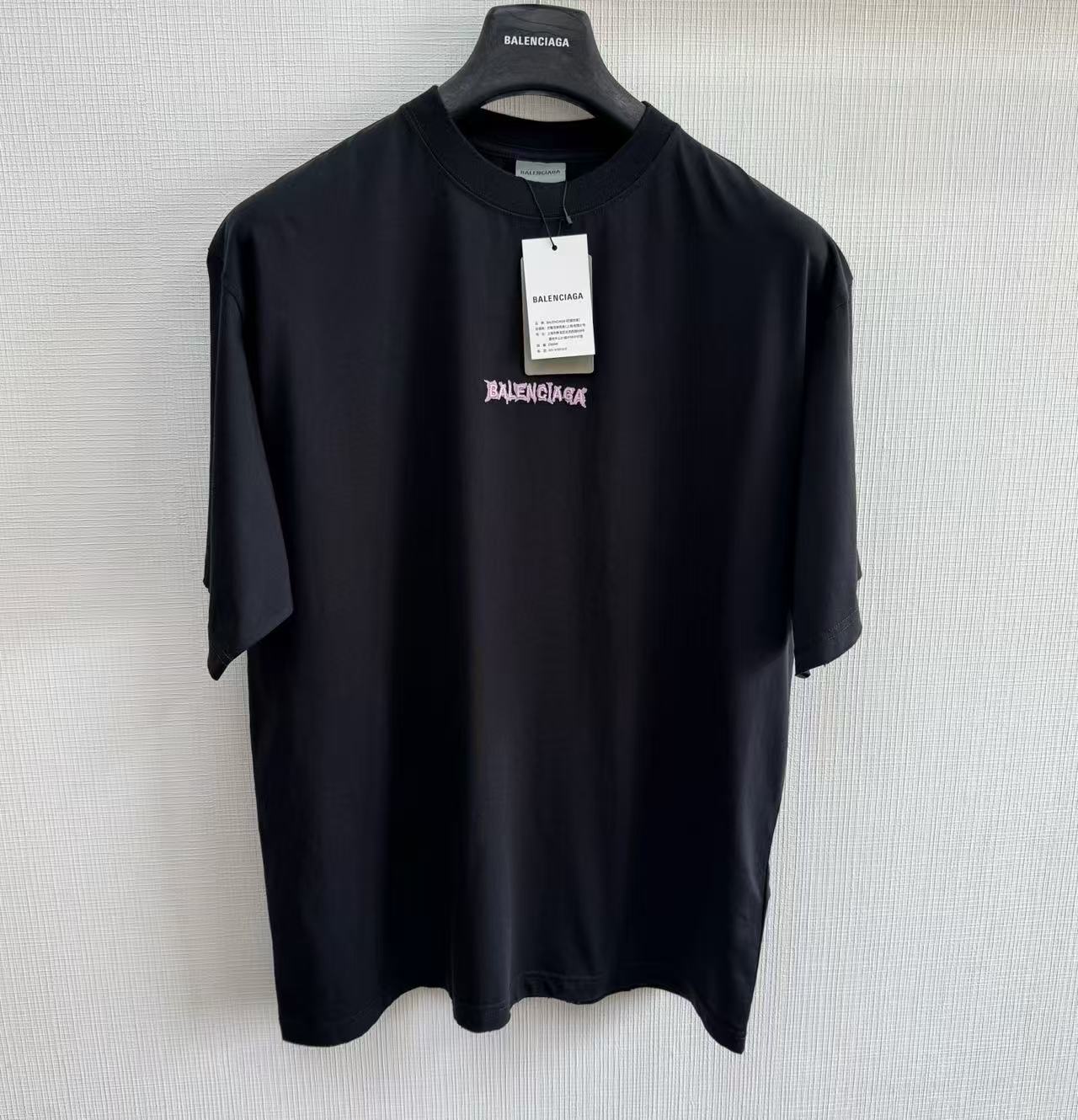 在 Demna 的美學語境中,粉紅色從不代表嬌弱,而是一種極具侵略性的街頭主張。這次分享的 2026 春夏(26SS)粉色印花刺繡圓領短袖,完美展現了品牌標誌性的「毀滅與重生」設計哲學。