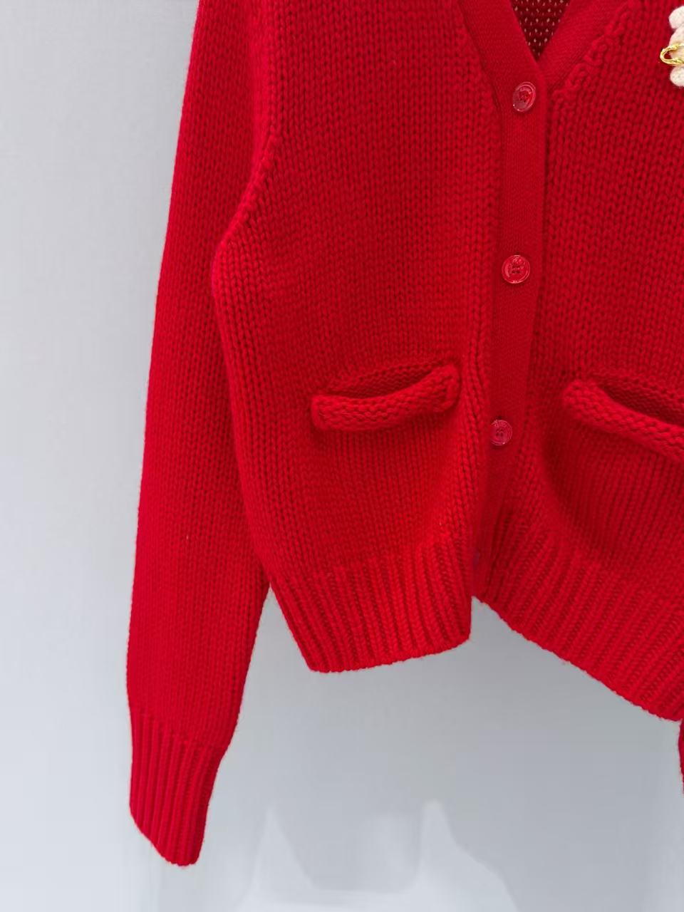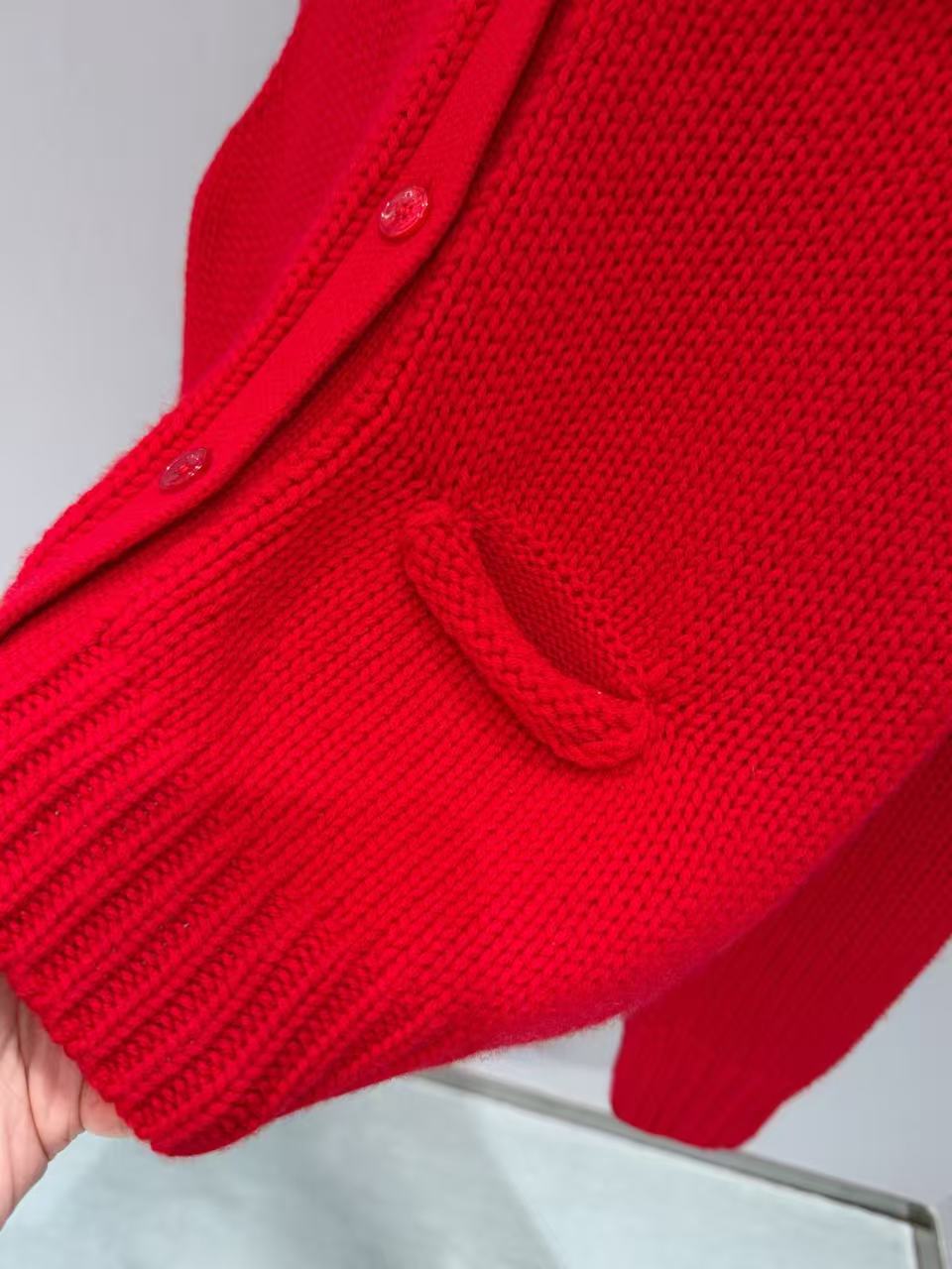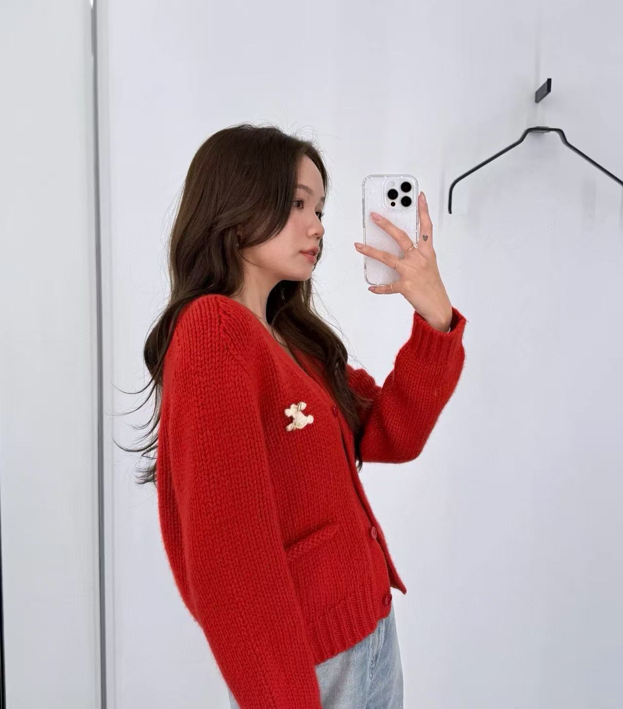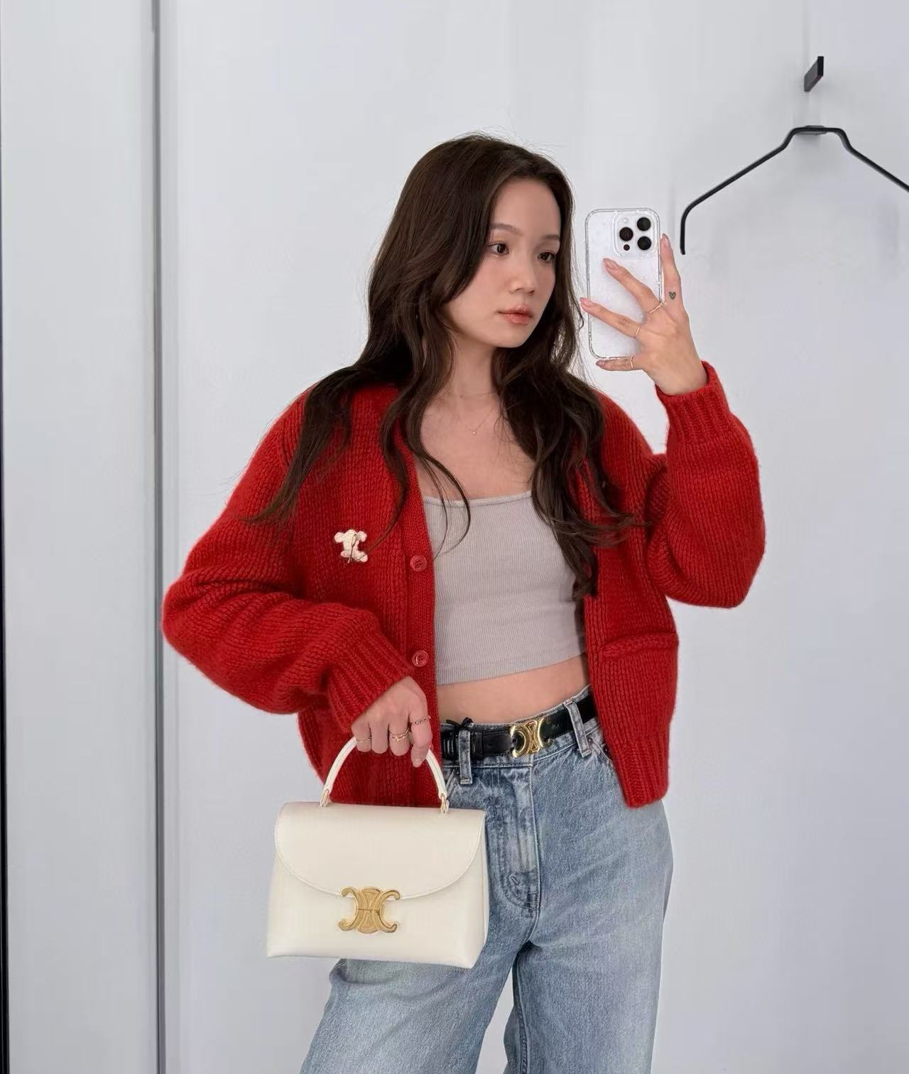 2025秋冬 CE家 紅色V領針織開衫:法式鬆弛感的穿搭秘密武器!