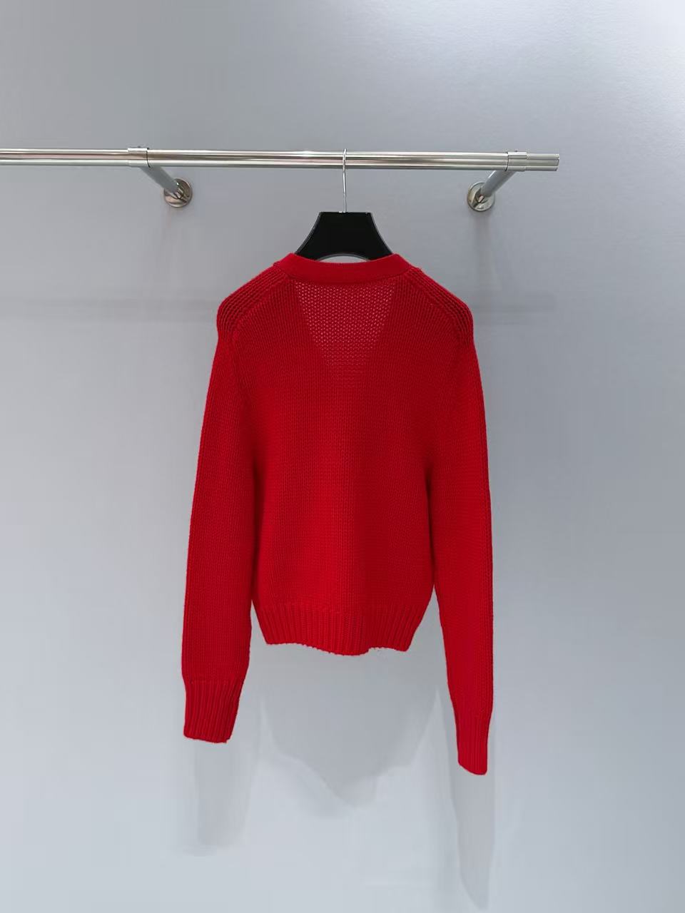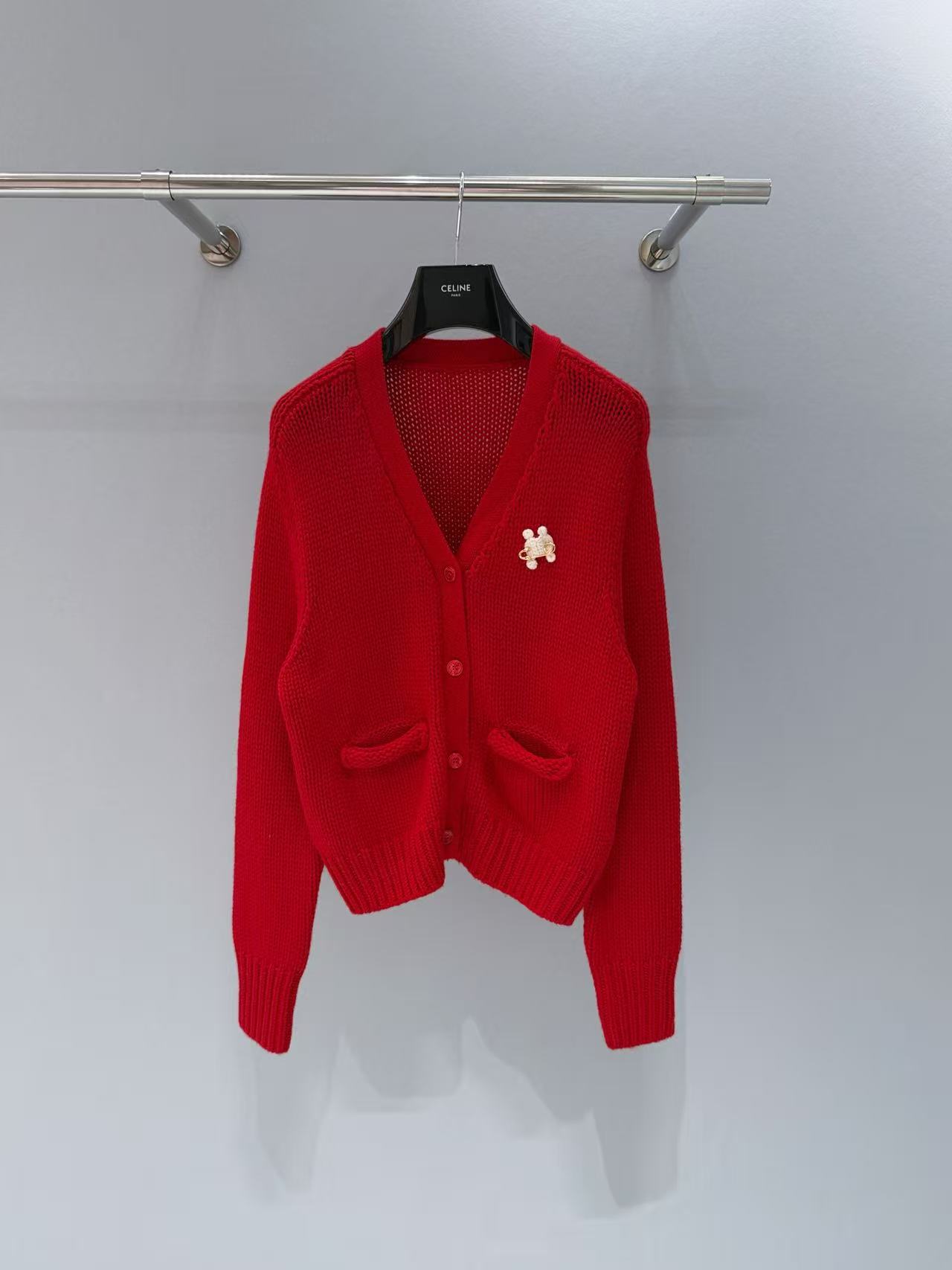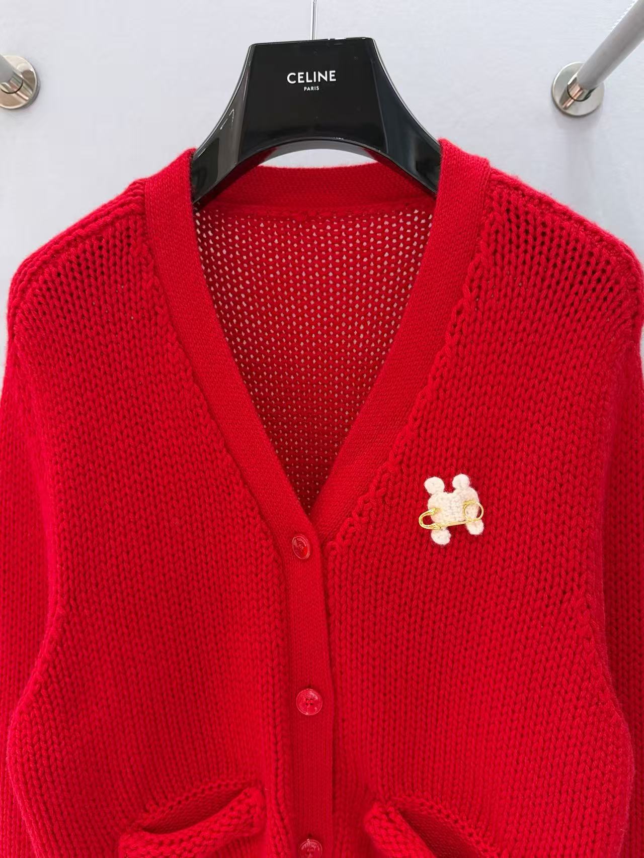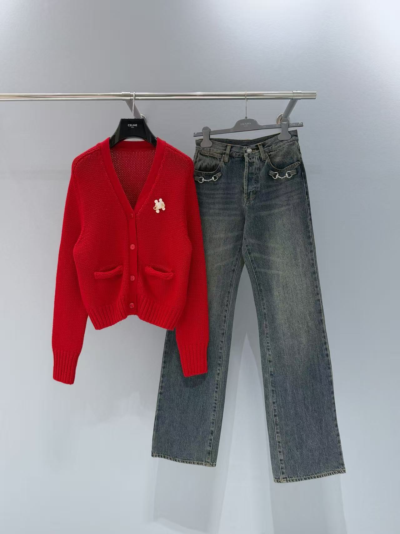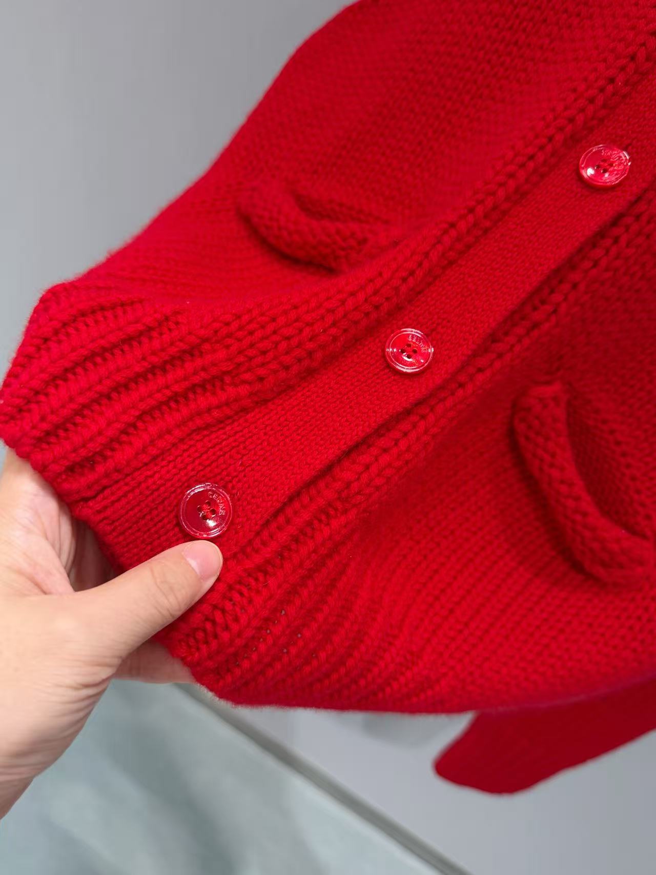 2025秋冬 CE家 紅色V領針織開衫:法式鬆弛感的穿搭秘密武器!