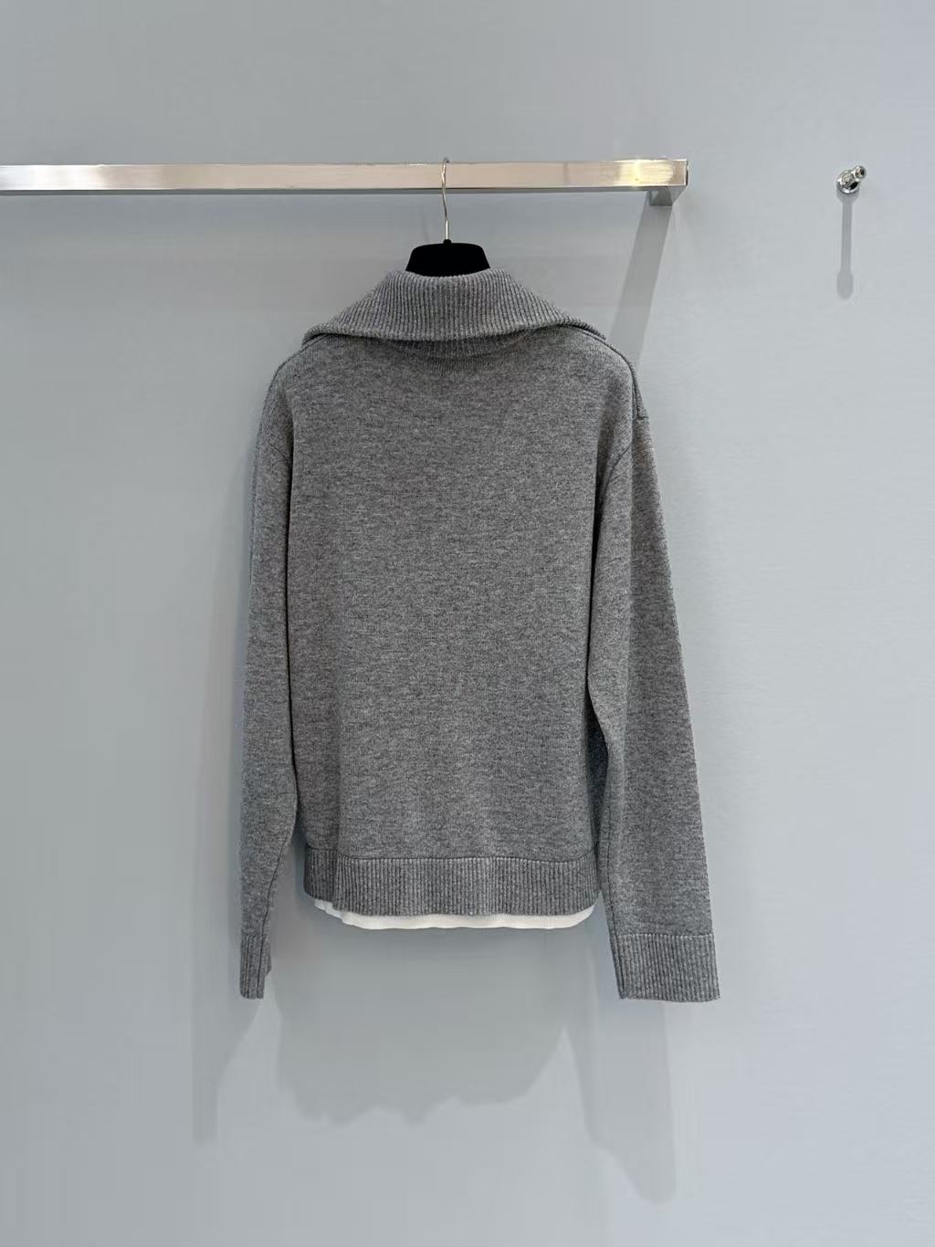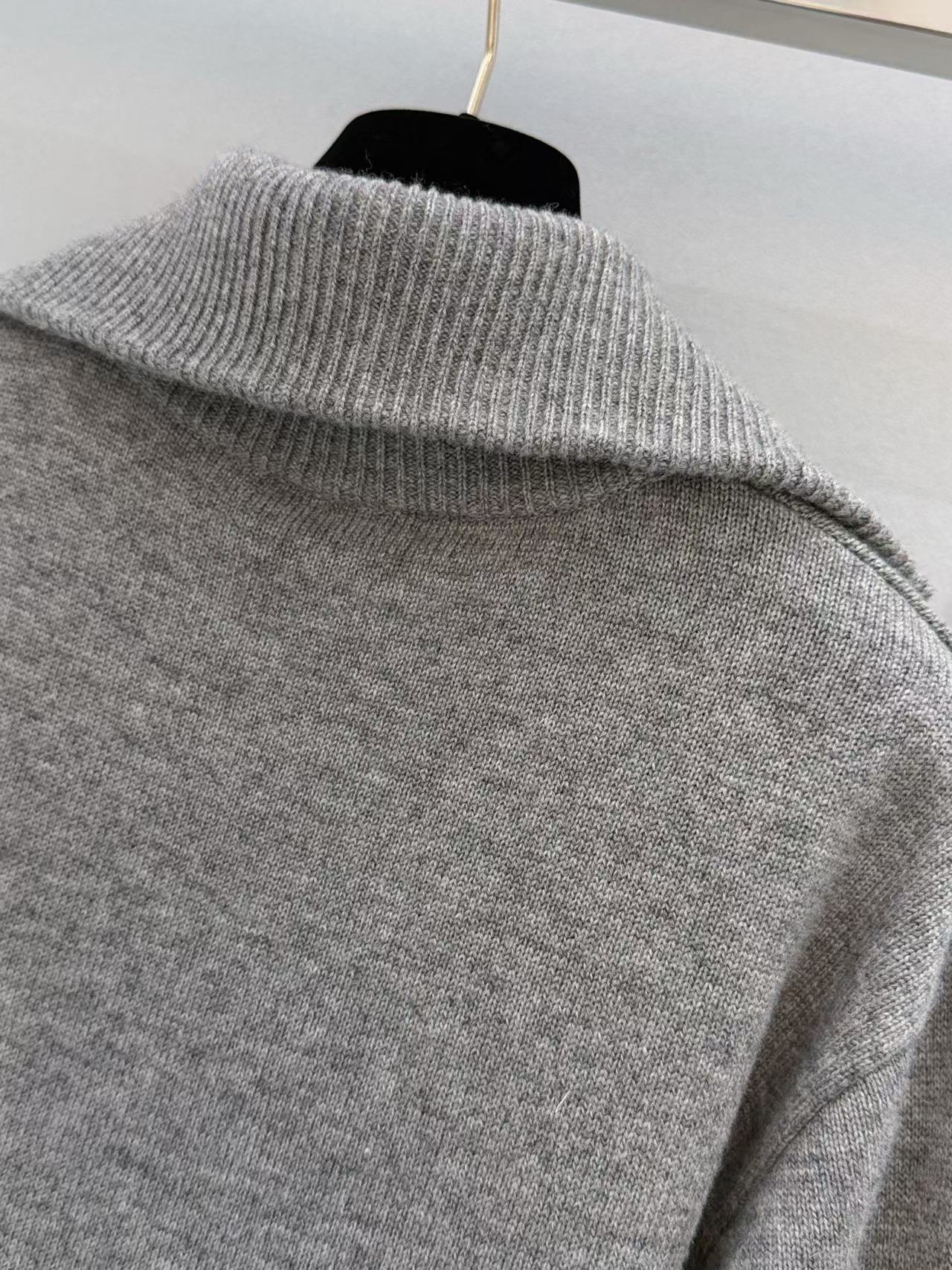 2026早春 C家 灰色大翻領半拉鏈針織衫