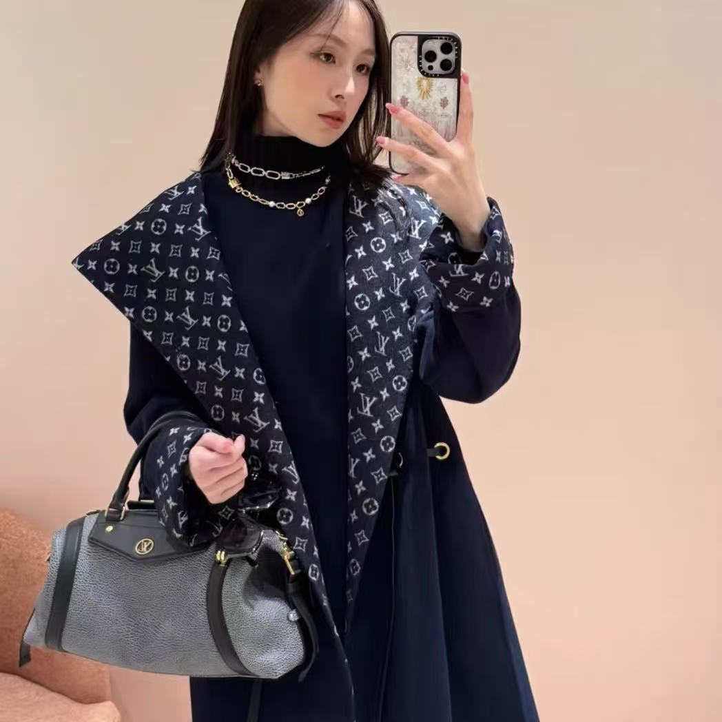 100% 頂級雙面羊毛,手感細膩柔軟得像頂級圍巾,輕盈卻保暖到不行,零負擔。材質帶自然光澤,深藍色在光線下會微微泛霧面藍調,拍照直接美到發光。
