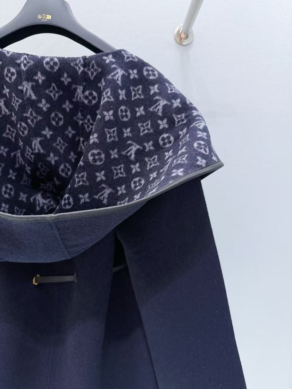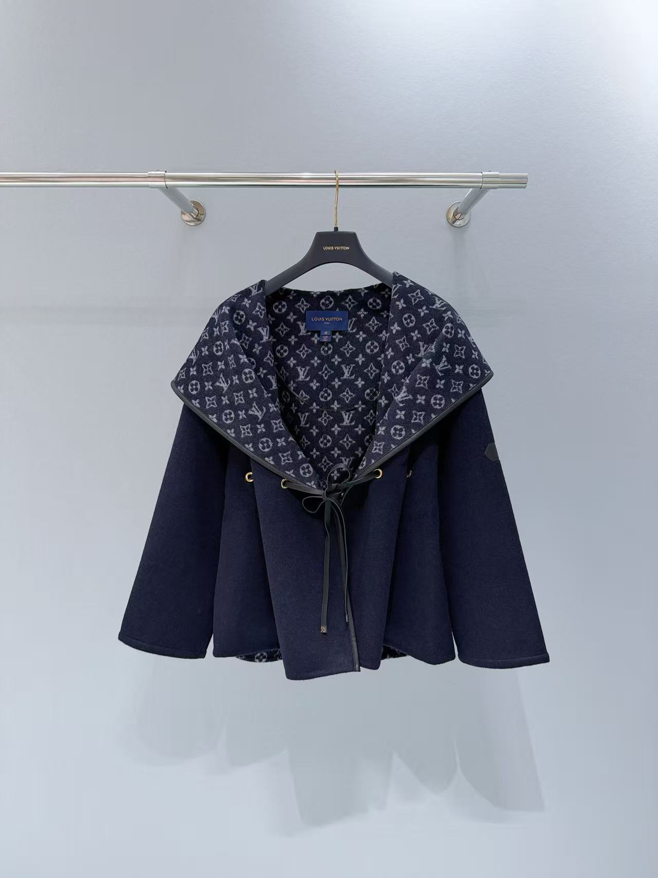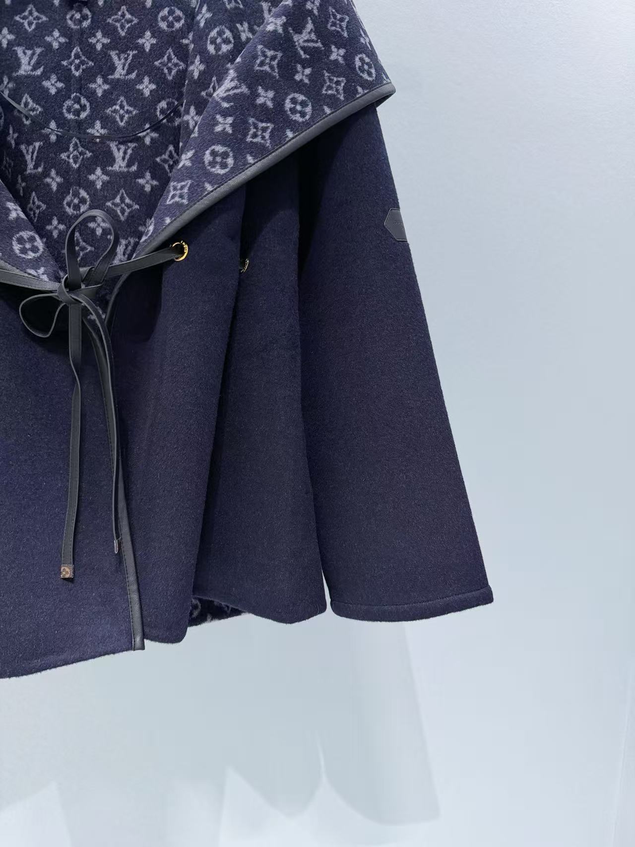 2025秋冬 L家 深藍羊毛斗篷繫帶短款大衣
