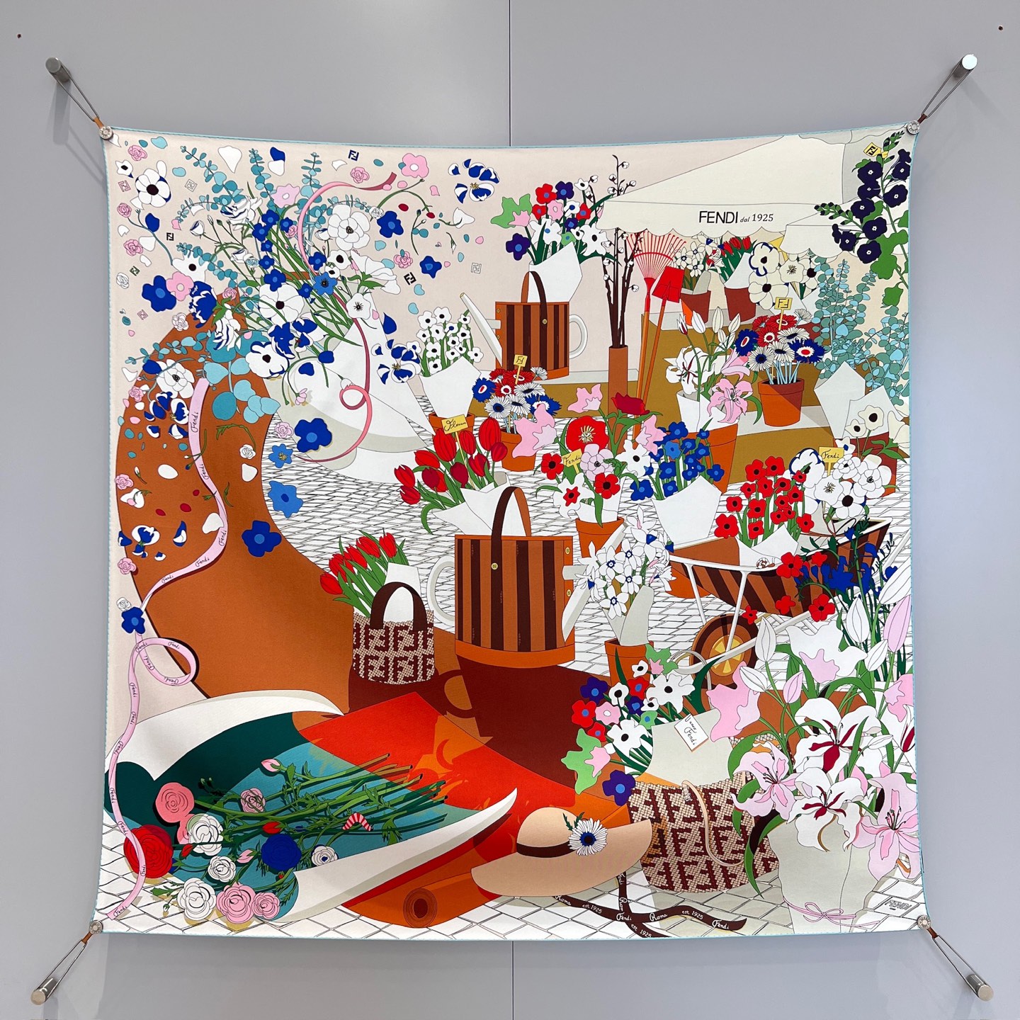 彩白底色讓整體更清新,也更好搭配各種服裝。無論是披在肩上、繫在腰間,或是當作髮帶、包飾,都能替造型增加一點柔和又有質感的細節。