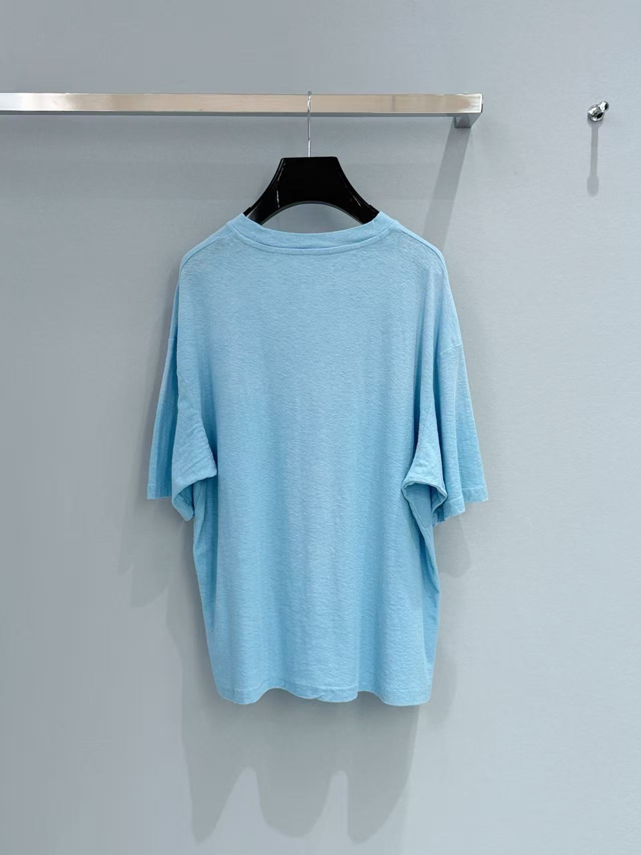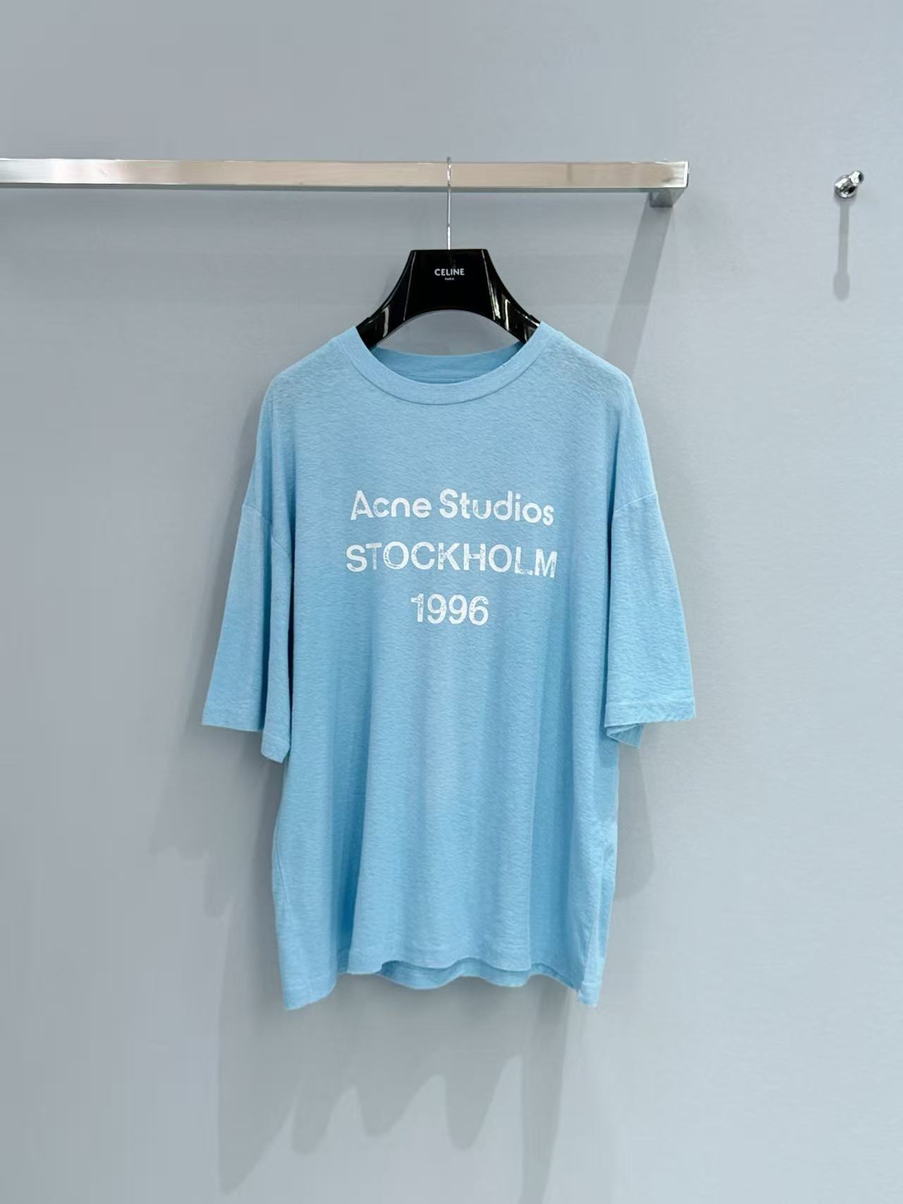 除了單穿,這件輕薄的短 T 也非常適合疊搭在妳那件 Hermès 深靛藍牛仔夾克 裡面,露出胸口的 Stockholm 1996 字母細節,增加整體的視覺豐富度。