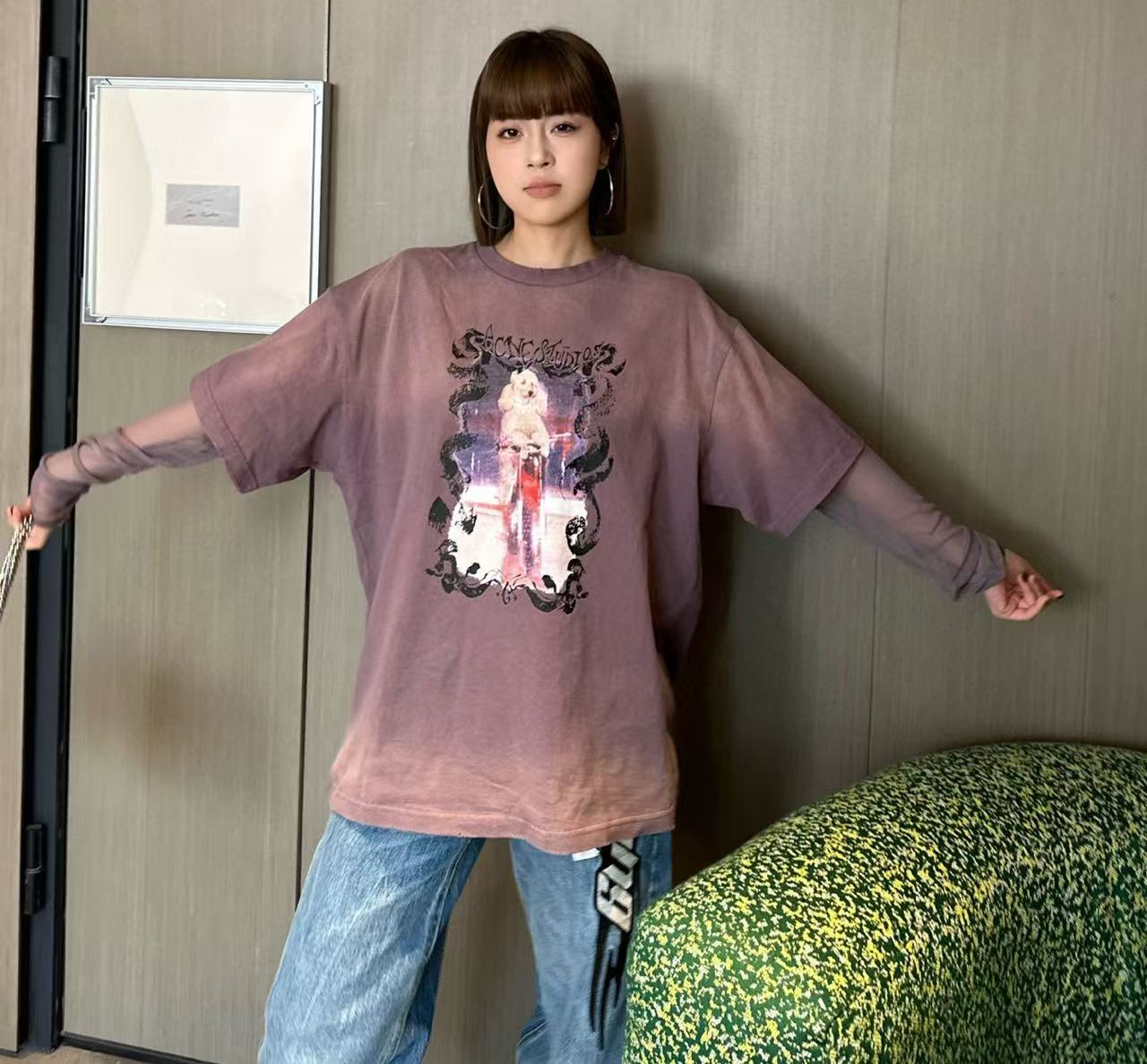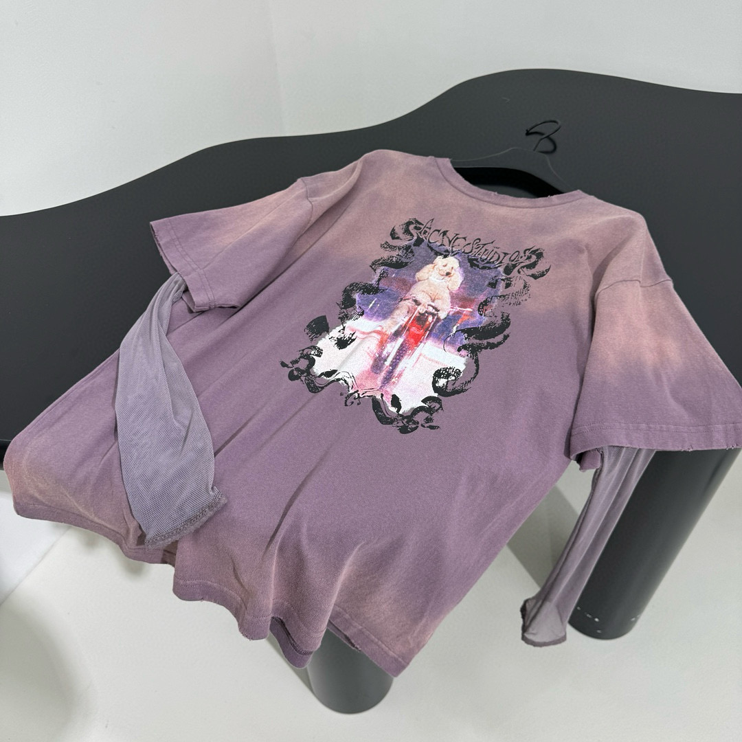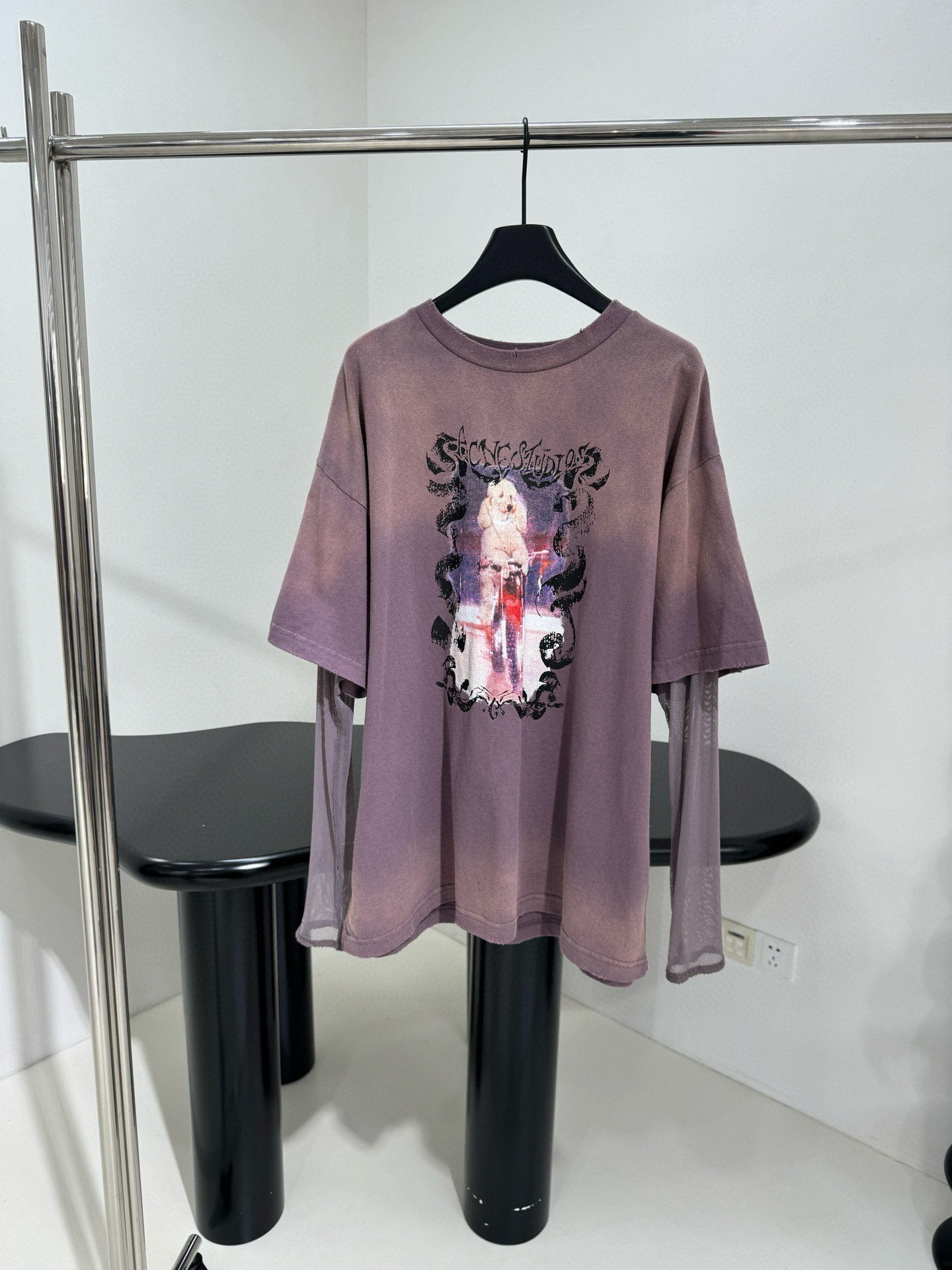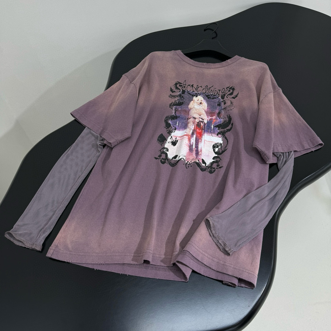 2025早春新品 AC家假兩件狗狗摩托車印製圖案上衣