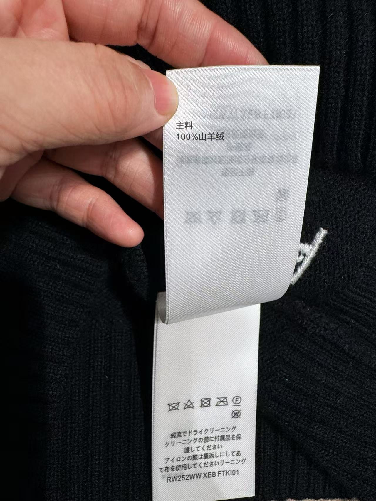 採用定制羊絨紗線織造,嚴選 100% 山羊絨材質,觸感柔軟細緻、親膚不刺癢,輕盈又保暖,讓整件毛衣兼具舒適度與高級感。