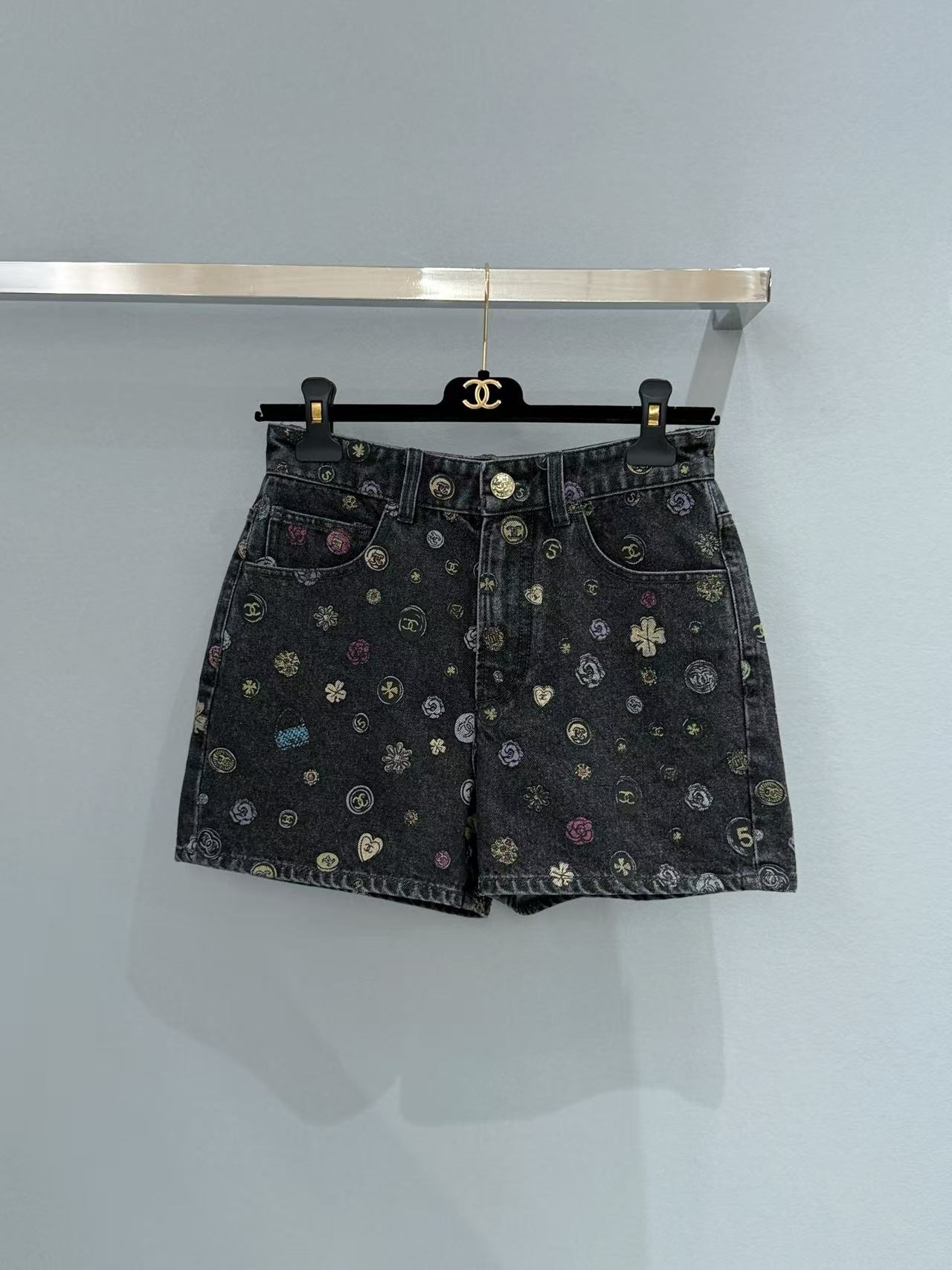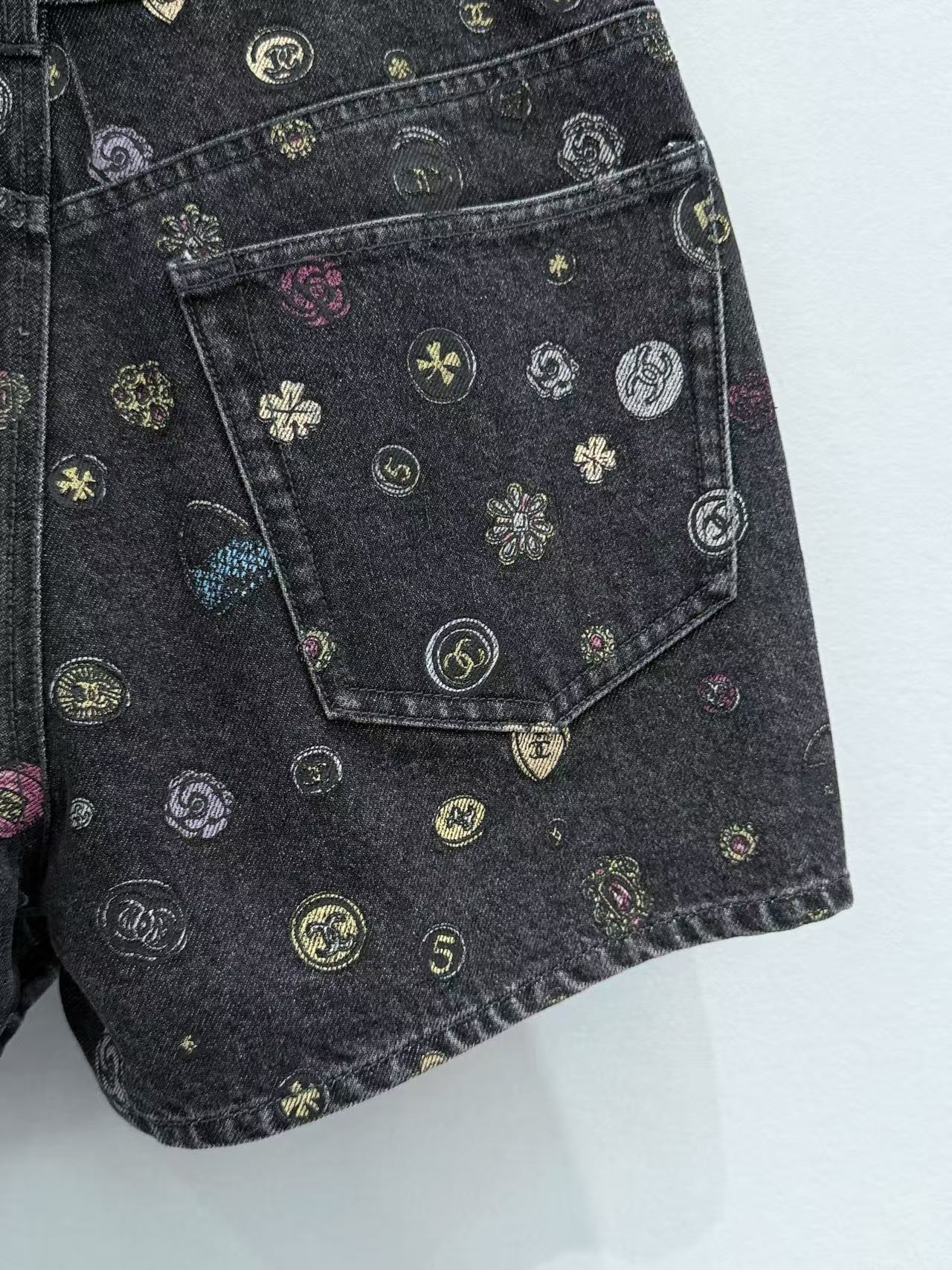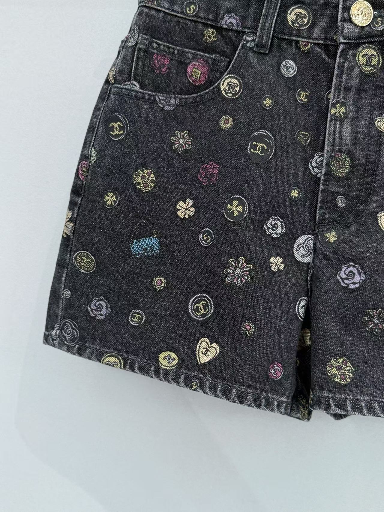 2025早春 C家 山茶花印製牛仔短褲