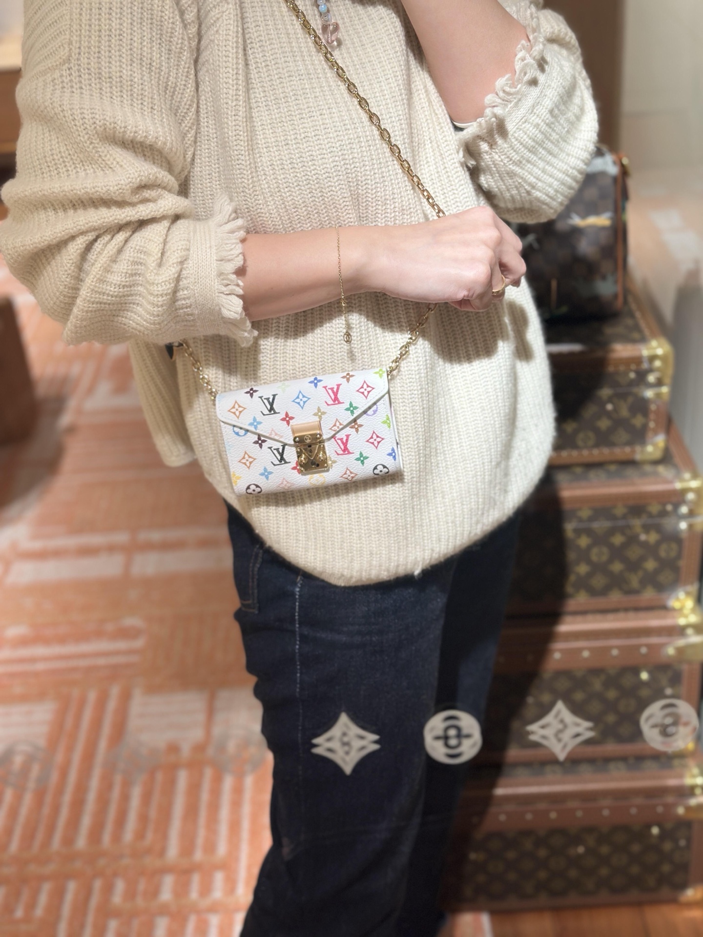 如果把鏈條繞兩圈掛在大包上當包掛,瞬間就讓整個包款升級,細節感滿滿,尤其是鏈條本身的質感,真的越看越喜歡。