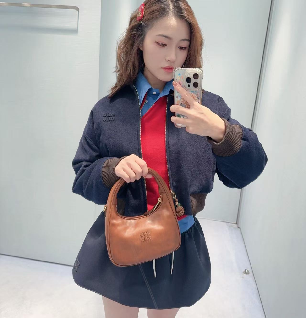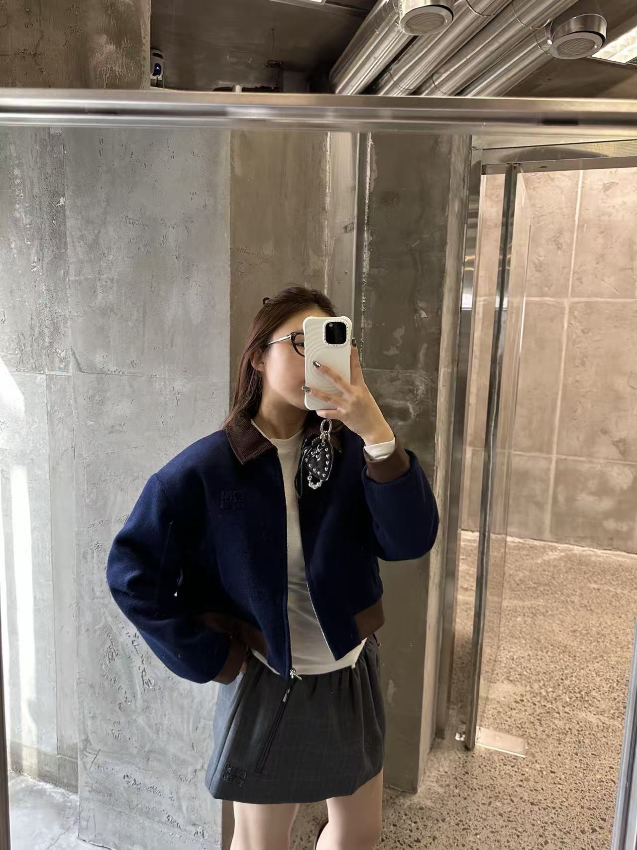 胸前還有品牌經典字母刺繡,辨識度滿分,低調卻又很有Miu的俏皮女孩,雙側大口袋可以塞手或放小物,彈力螺紋袖口防風又舒適,版型是短款夾克,穿起來顯腰細、比例好