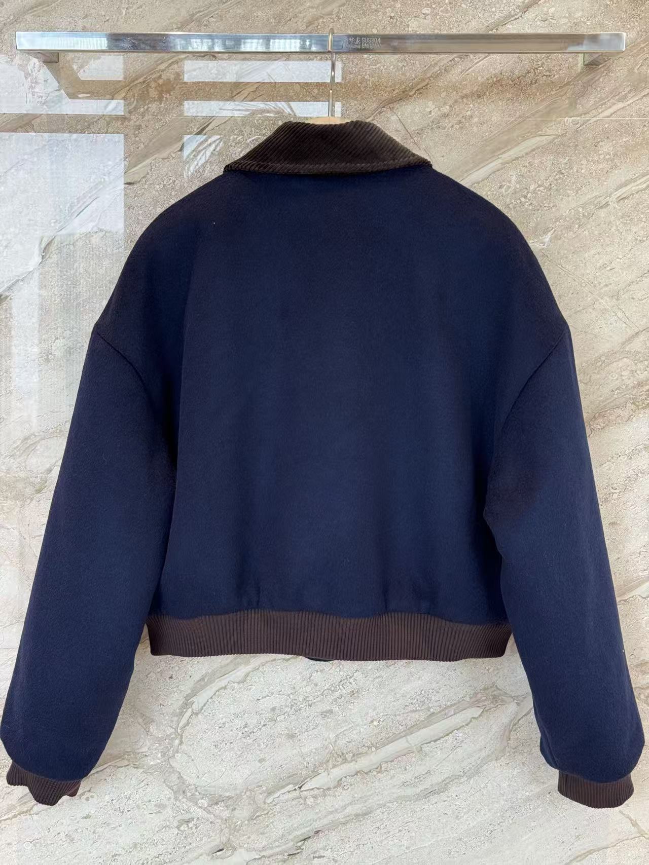 燈芯絨領羊毛棉服夾克,深藍羊毛混紡材質搭配棕色燈芯絨翻領,簡直是質感滿分啊~