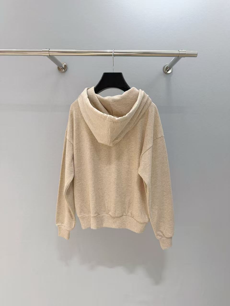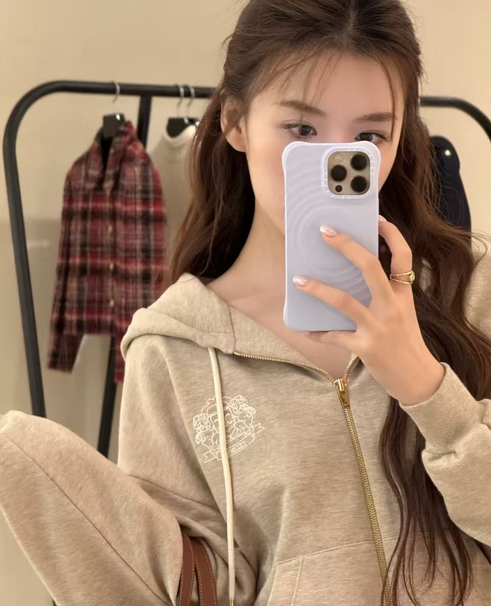 袖口、帽繩都是簡約素色設計,乾淨到犯規,下擺螺紋收得剛好,不會亂翹又顯腰線