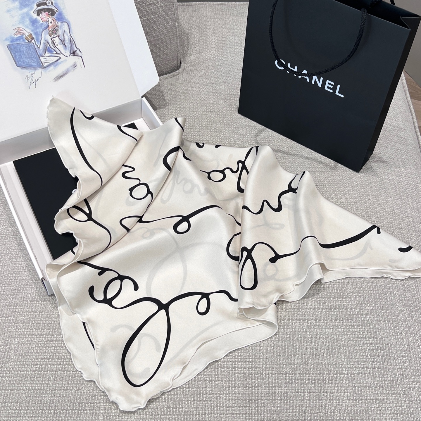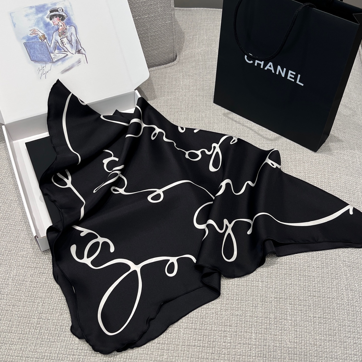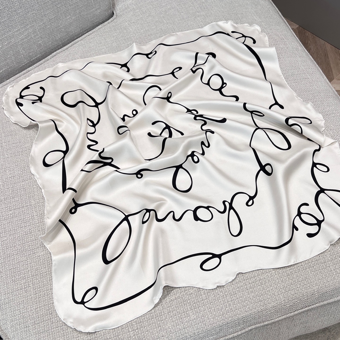 90x90cm的尺寸其實非常實用,不管是綁在脖子、當頭巾,或是繫在包包上,都能讓整體穿搭多一點精緻度。