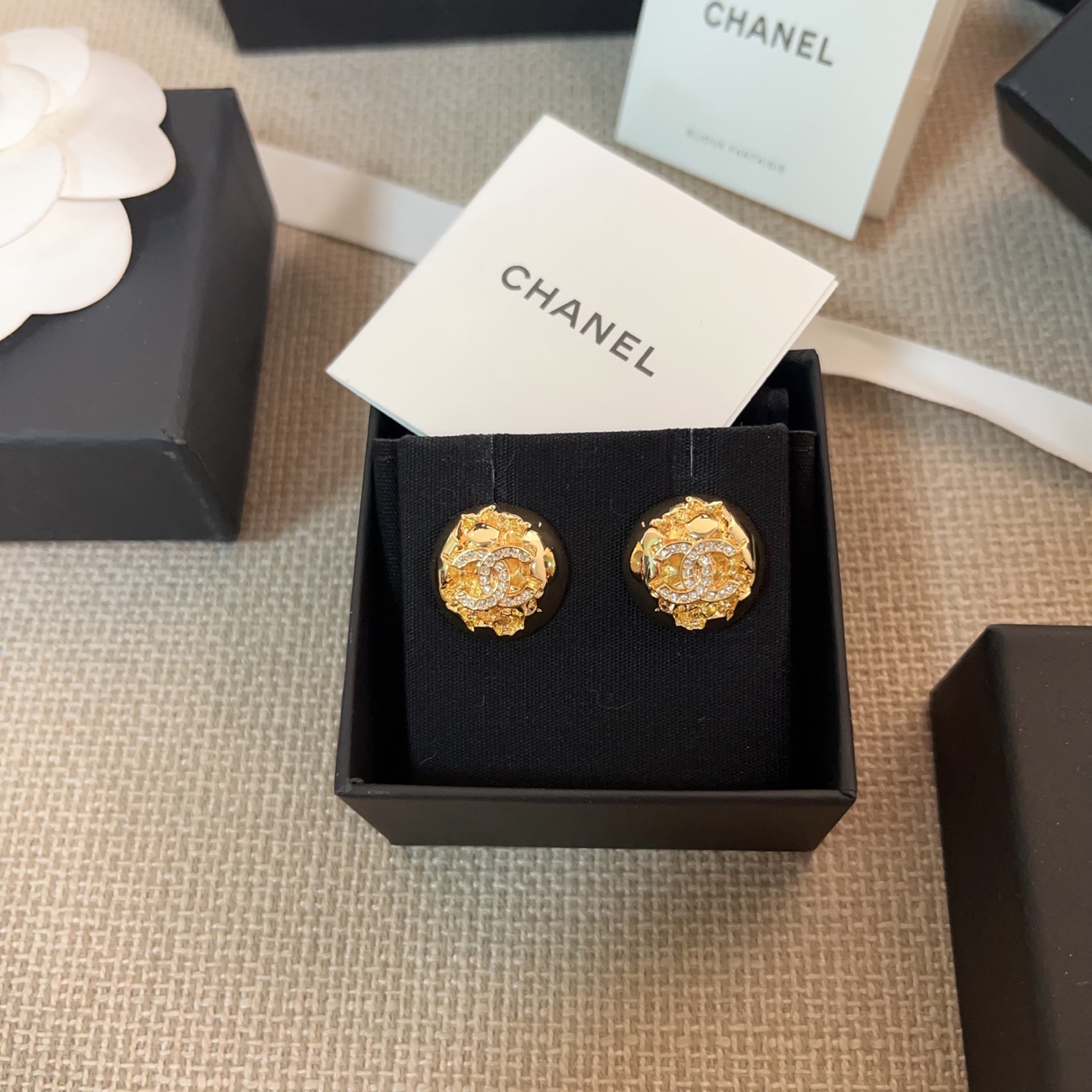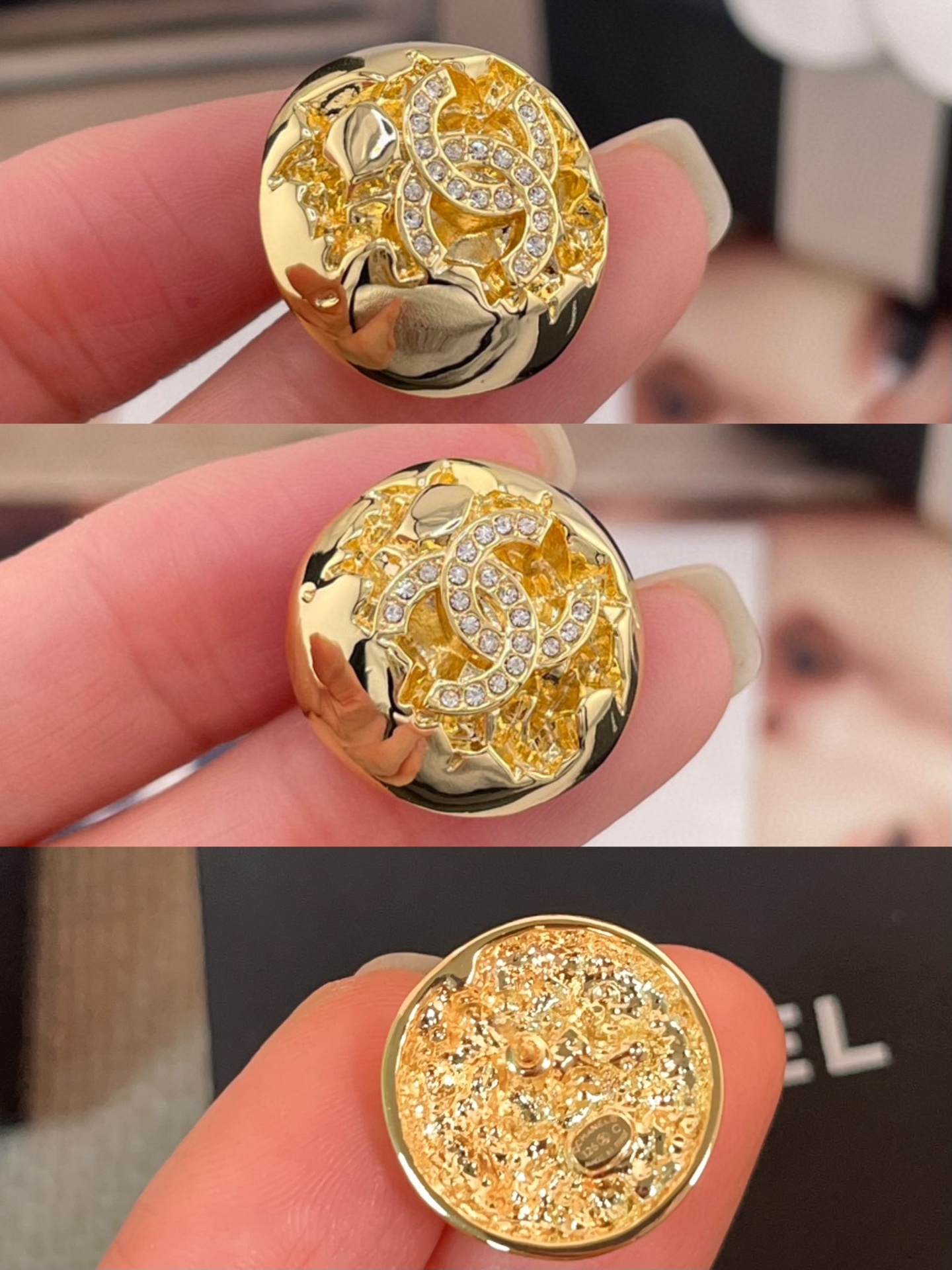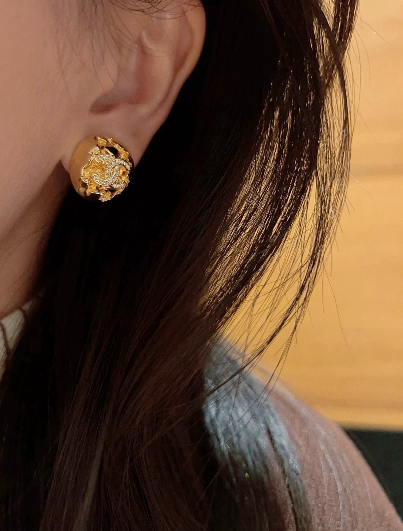 以金屬半球作為主體,搭配經典滿鑽雙 C 標誌,周圍點綴宛如流星般的細節設計,在光線下自然折射出細緻光澤,不浮誇卻非常吸睛。