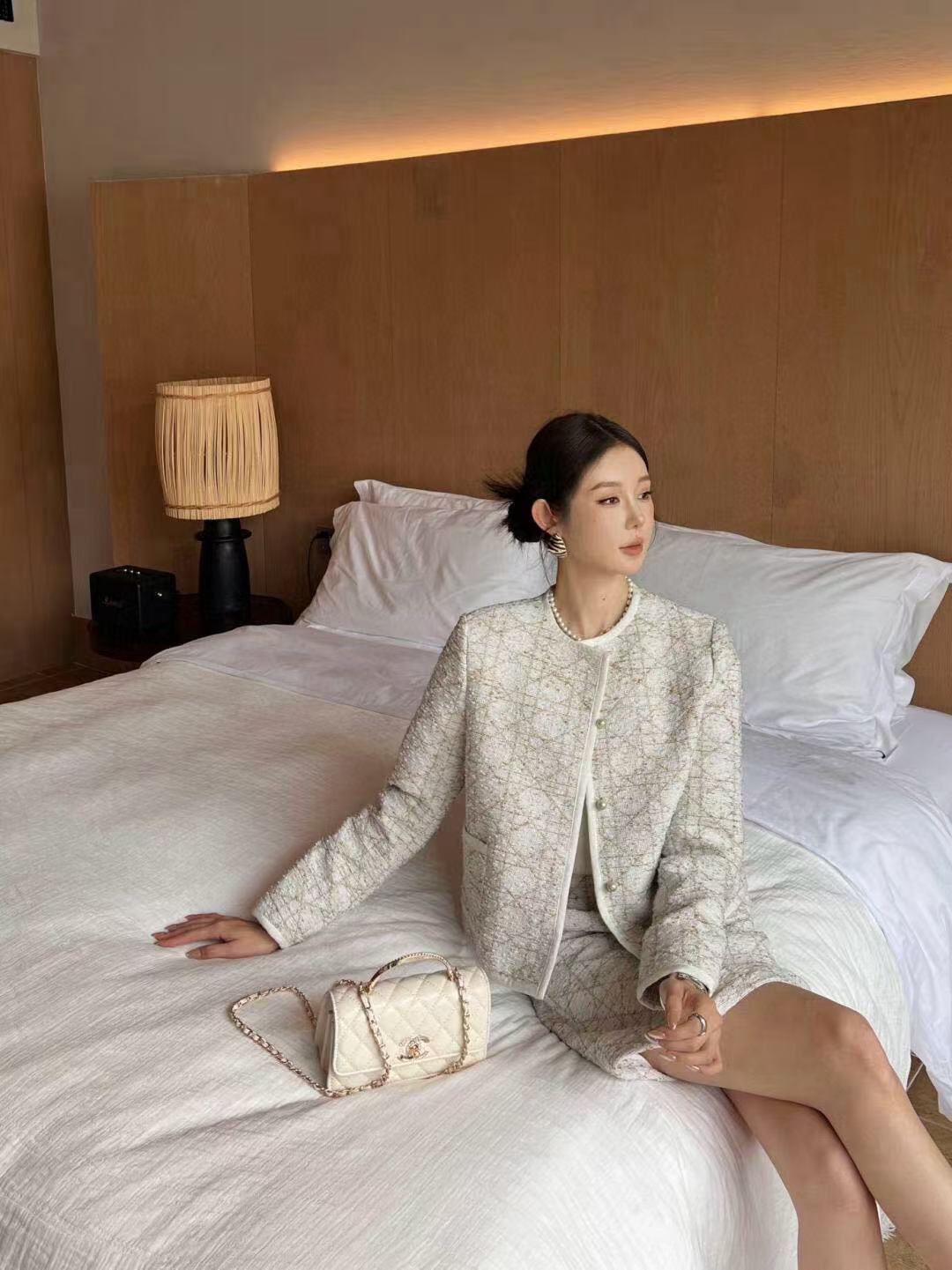 這款藤格紋立體粗花呢外套,從設計到細節完全沒話說。米杏色溫柔高級,帶著剛剛好的優雅與仙氣,還有一點點不張揚的高貴氛圍,穿上身整個人氣質直接拉滿。
