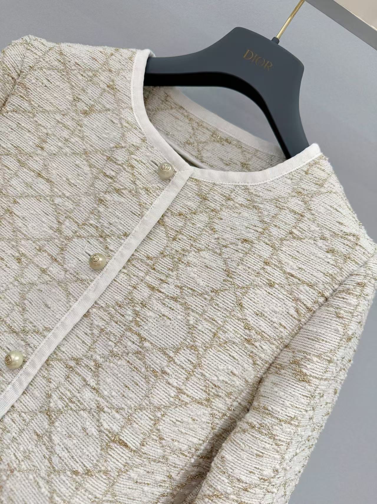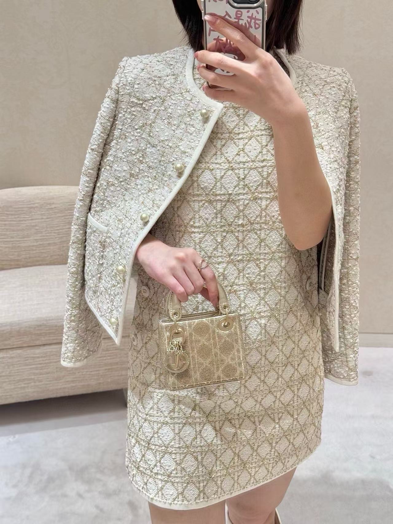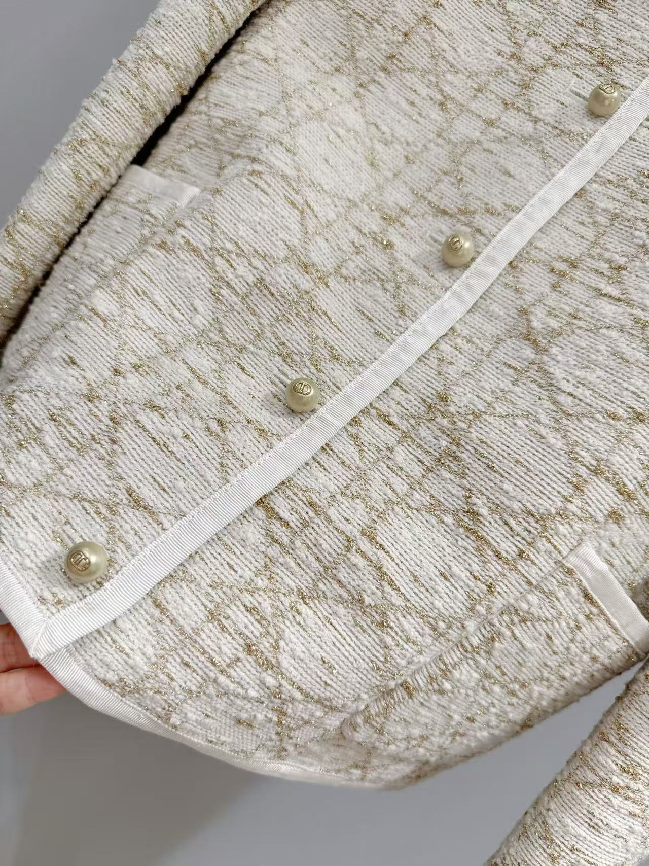 立體剪裁精準對格,加上進口珍珠釦的點綴,細節滿分,完全展現D家一貫的高級工藝。