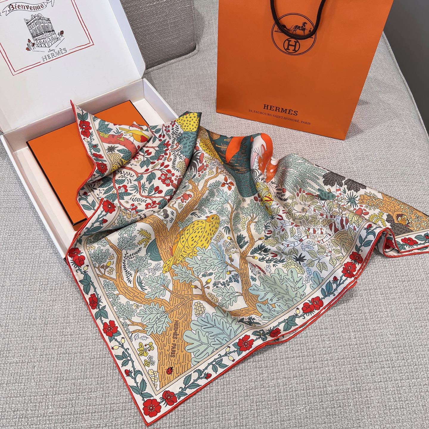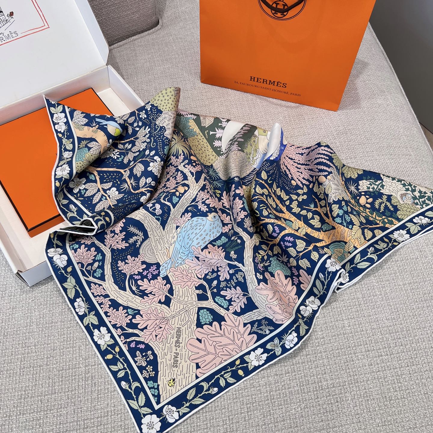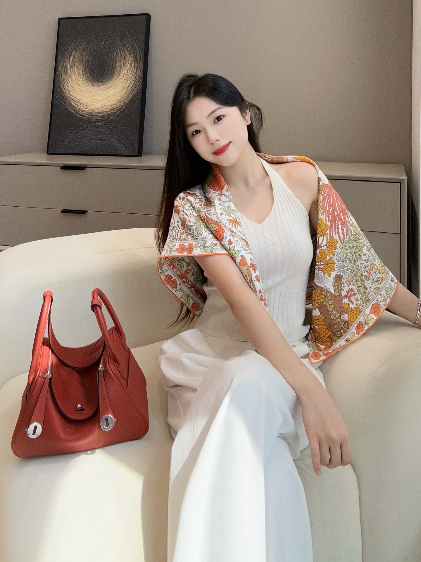 斜紋真絲本身就以柔軟、滑順又不失挺度著稱,垂墜感極佳,無論是繫在頸間、披在肩上,或作為包款裝飾,都能自然展現優雅線條。