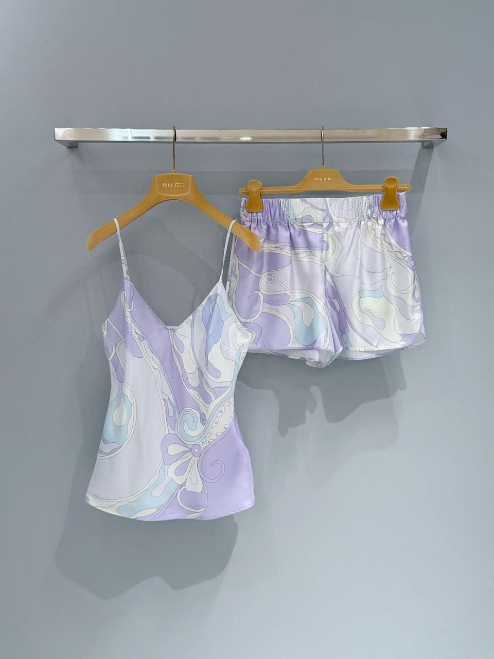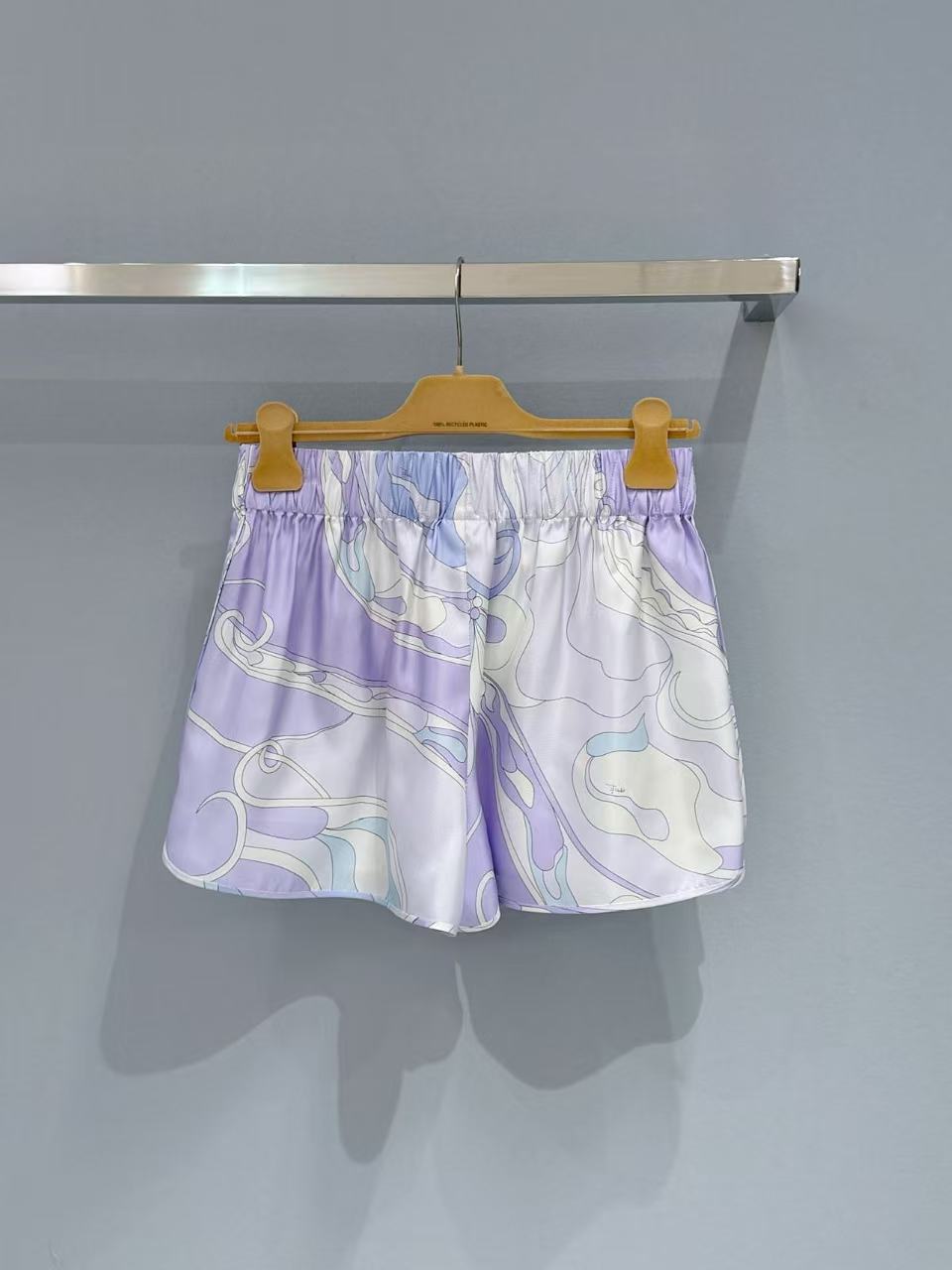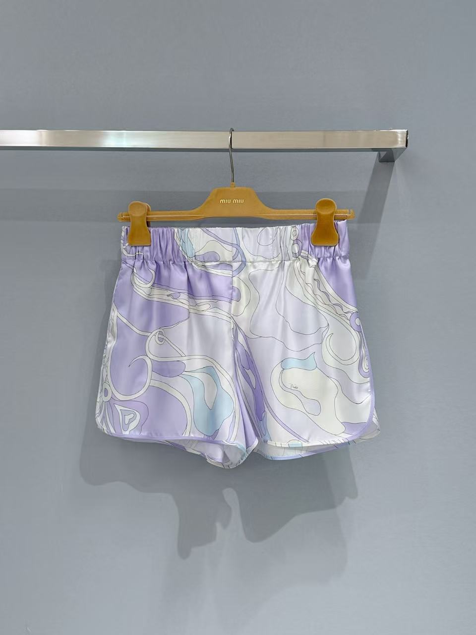 2026早春 Pu家 鳶尾花紫絲綢短褲