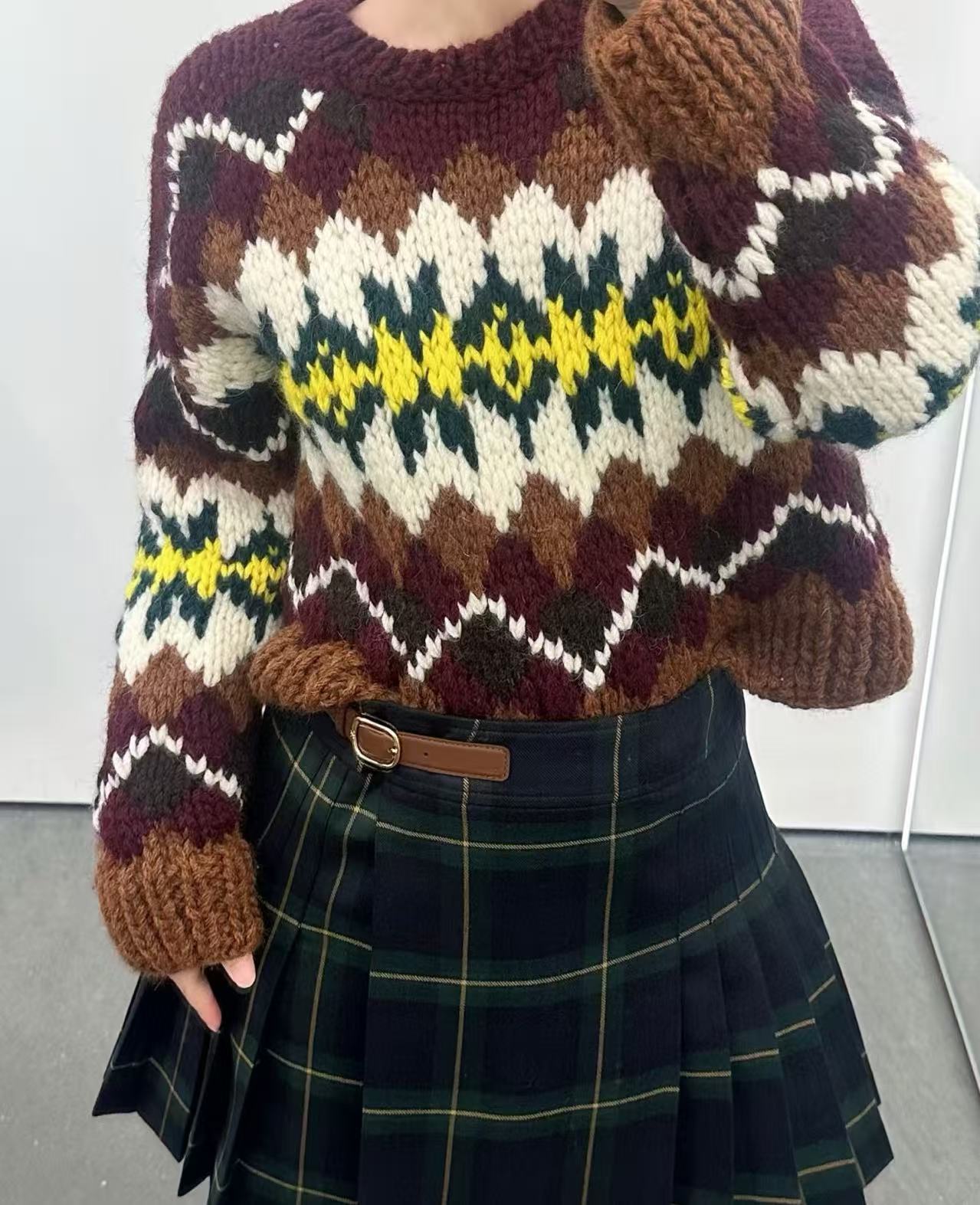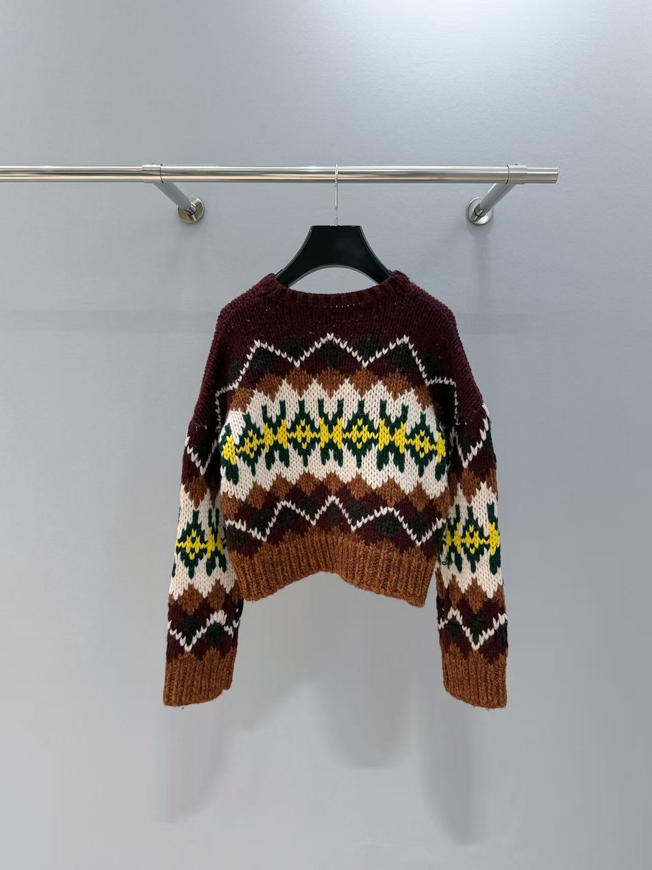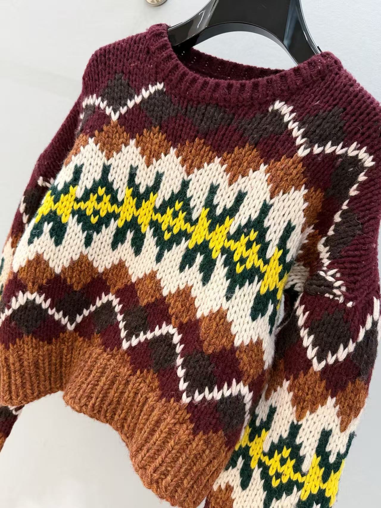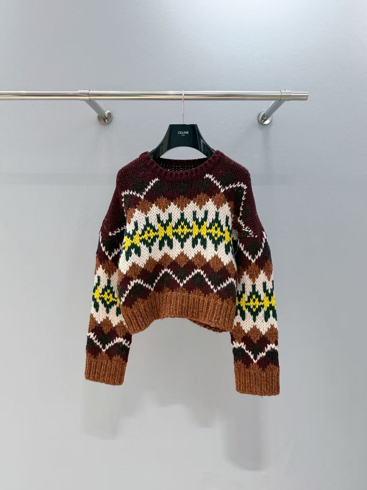 復古迷人的費爾島圖騰回歸!這款毛衣以 深巧克力色 x 酒紅撞色 為主調,