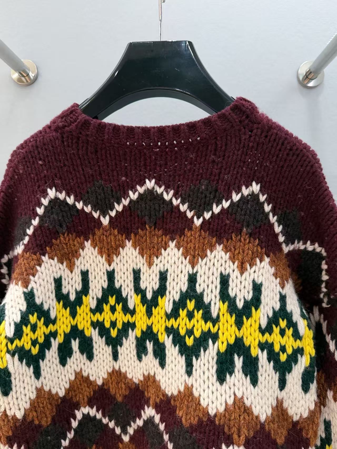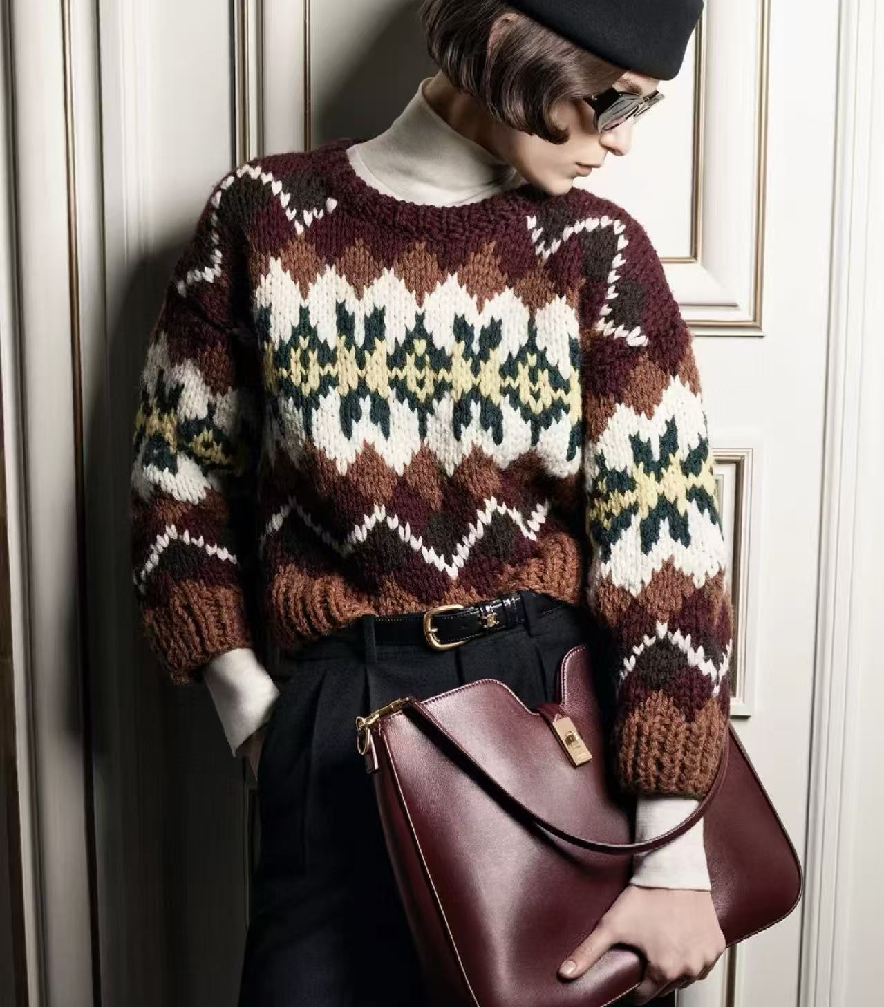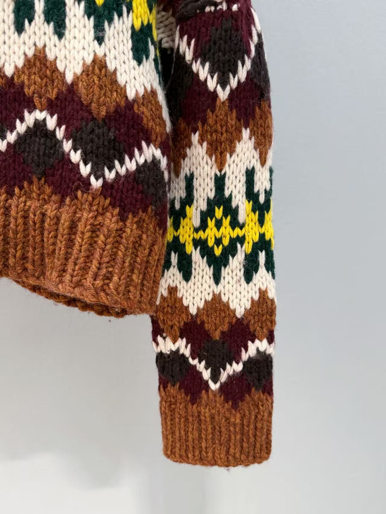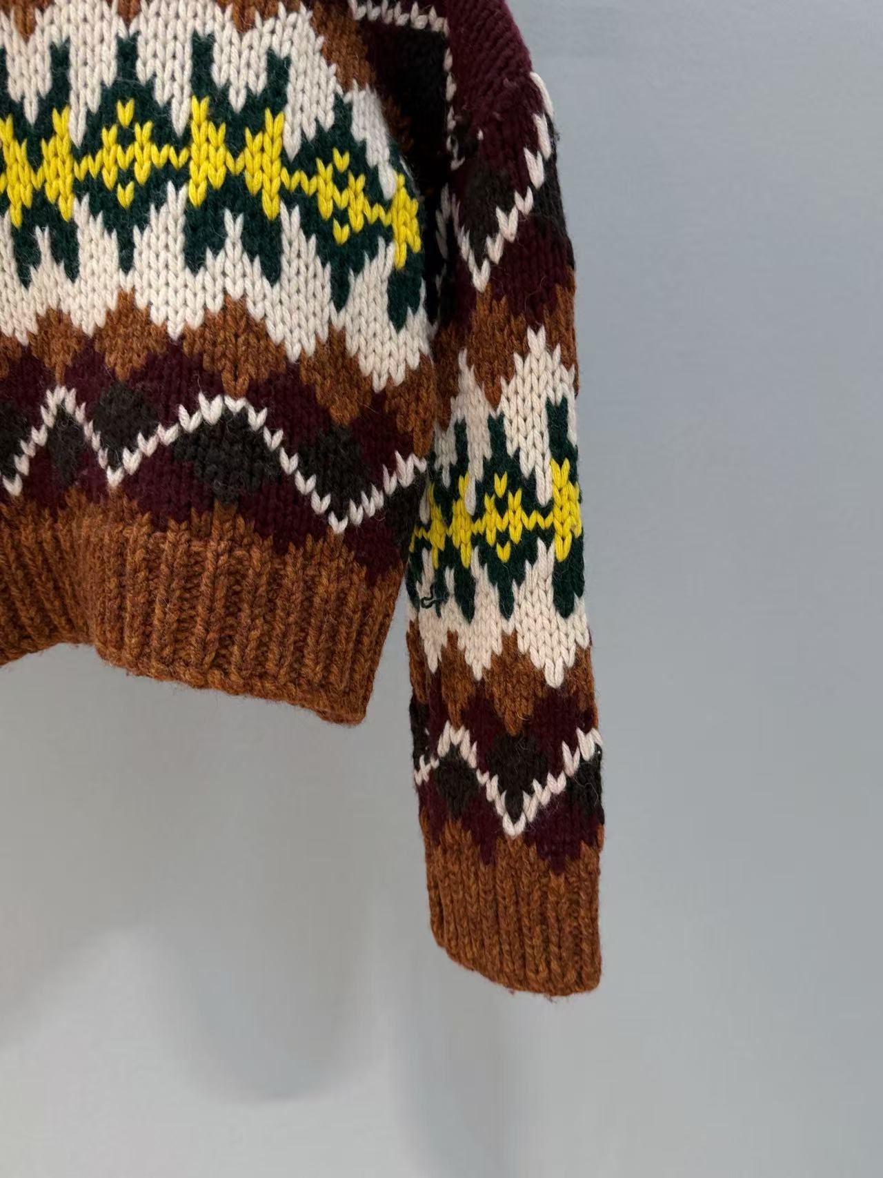 復古迷人的費爾島圖騰回歸!這款毛衣以 深巧克力色 x 酒紅撞色 為主調,