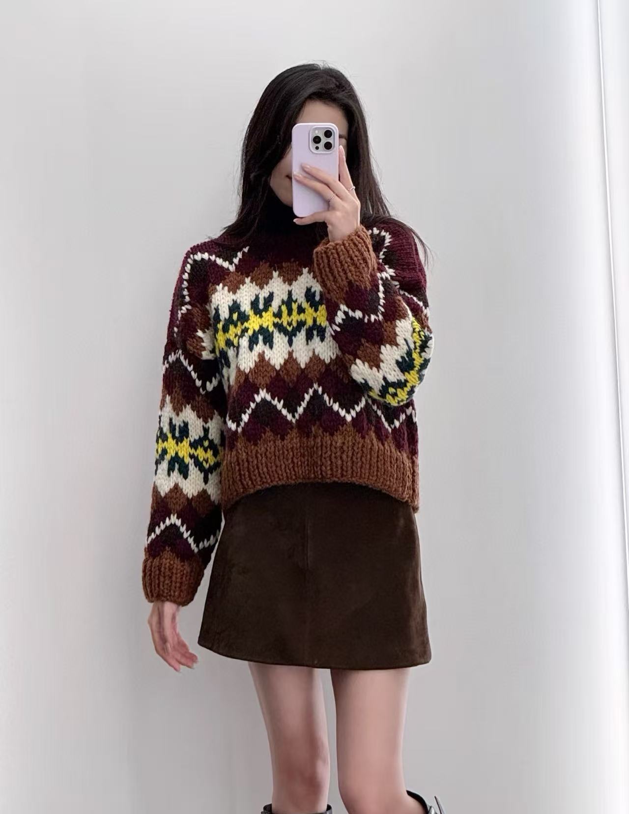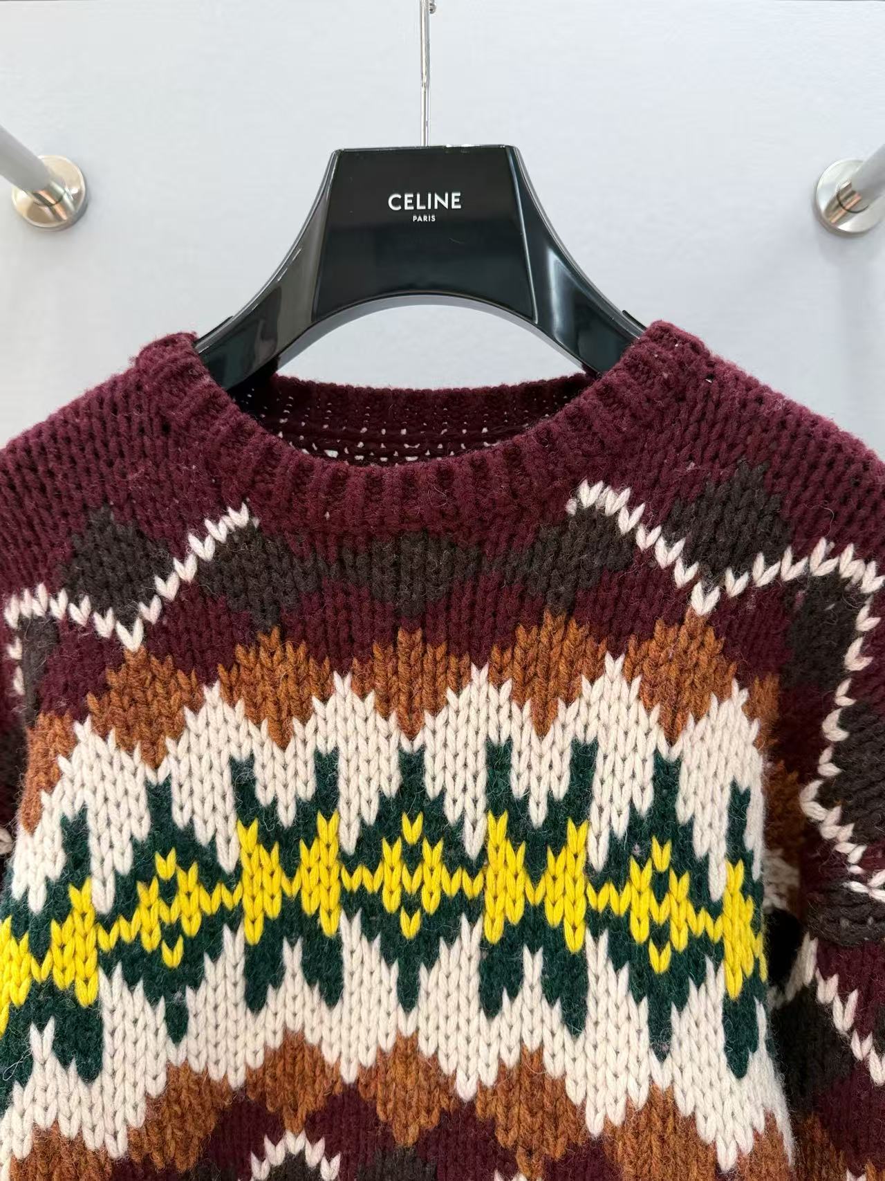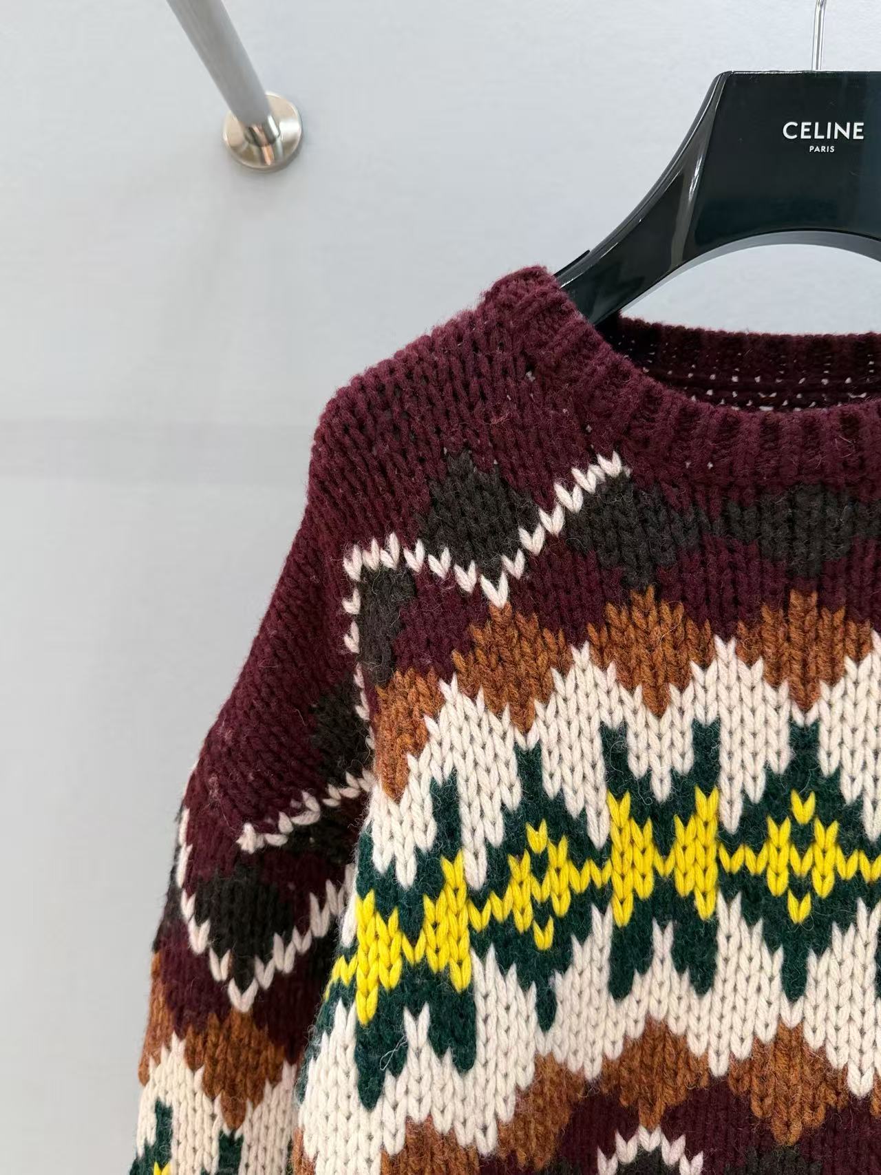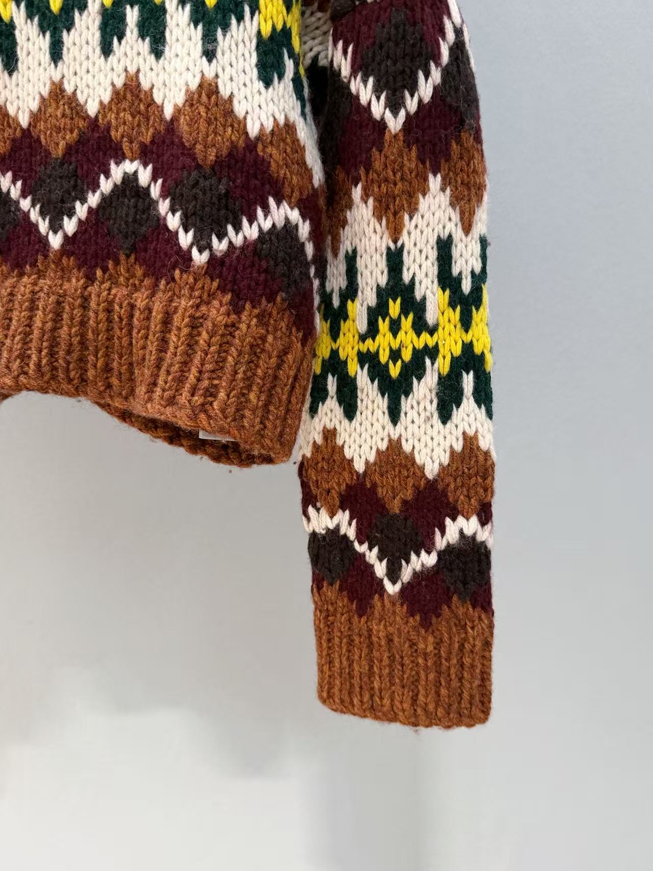 復古迷人的費爾島圖騰回歸!這款毛衣以 深巧克力色 x 酒紅撞色 為主調,