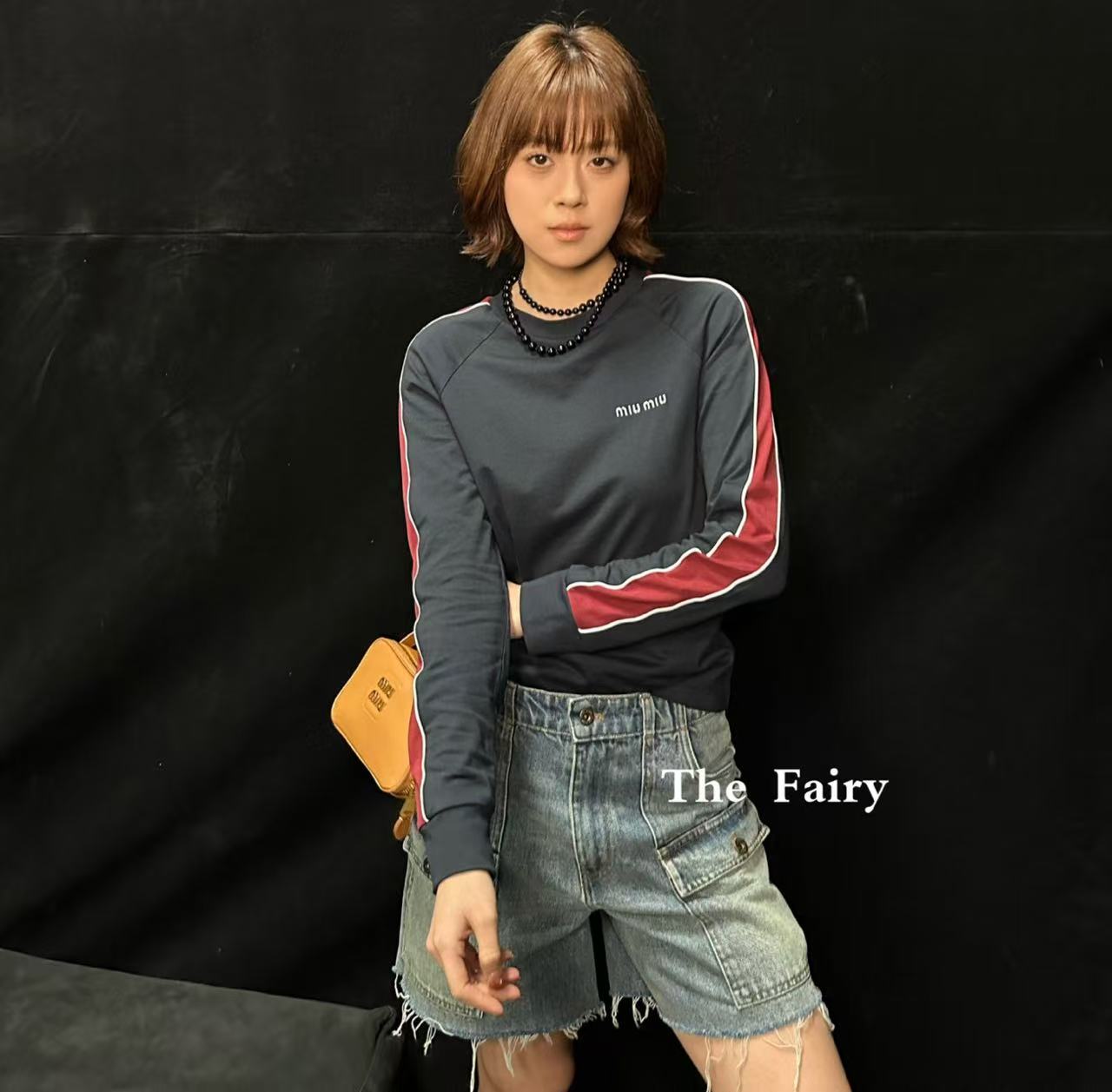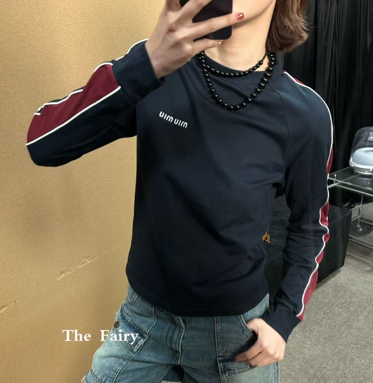 運動元素與少女感的結合始終是目光焦點。這次分享的 新品棉質圓領長袖 T 恤,巧妙地將復古賽車元素融入都會穿搭。