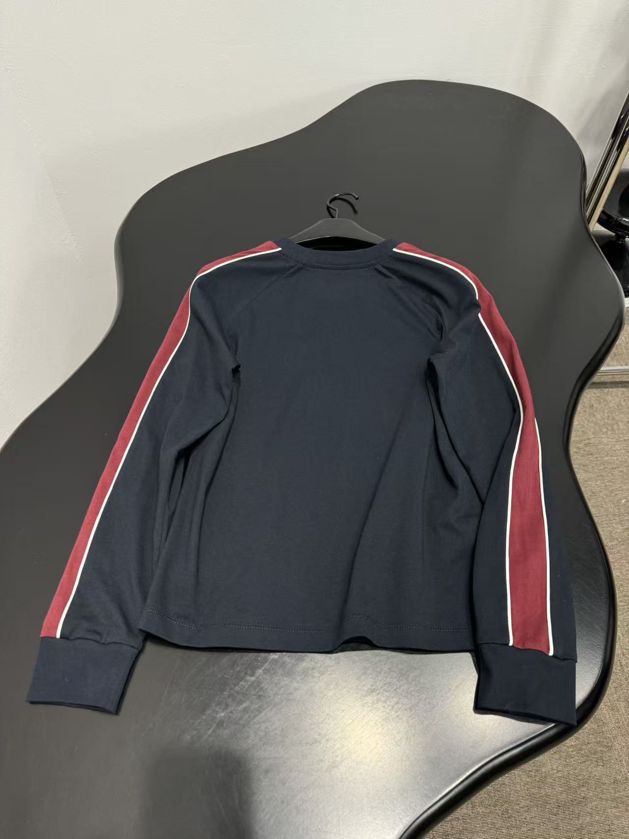 胸前精緻的品牌刺繡徽標,在細微處點綴出高階時裝的質感。細節處同樣精彩,袖口與下擺的羅紋處理,確保了單品在頻繁穿著後依然能維持紮實的結構。