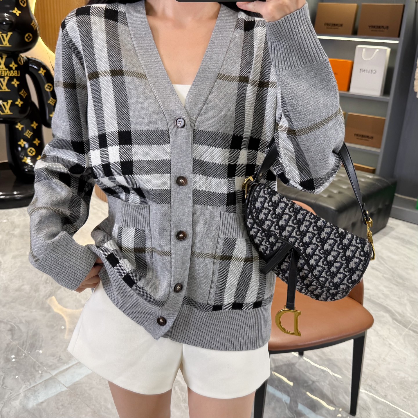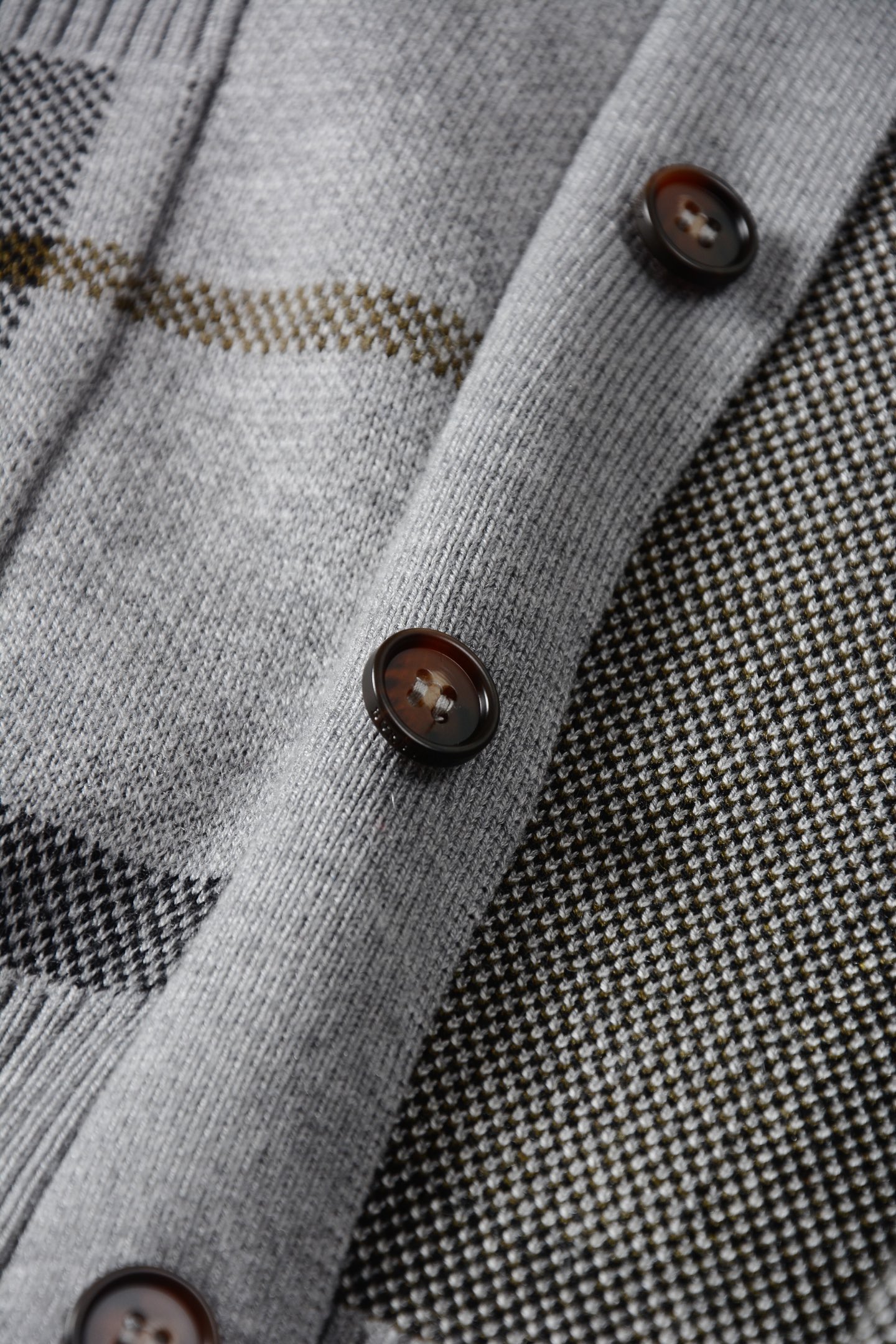 2025秋冬新品 BUR家 灰色格紋羊毛混紡提花開衫