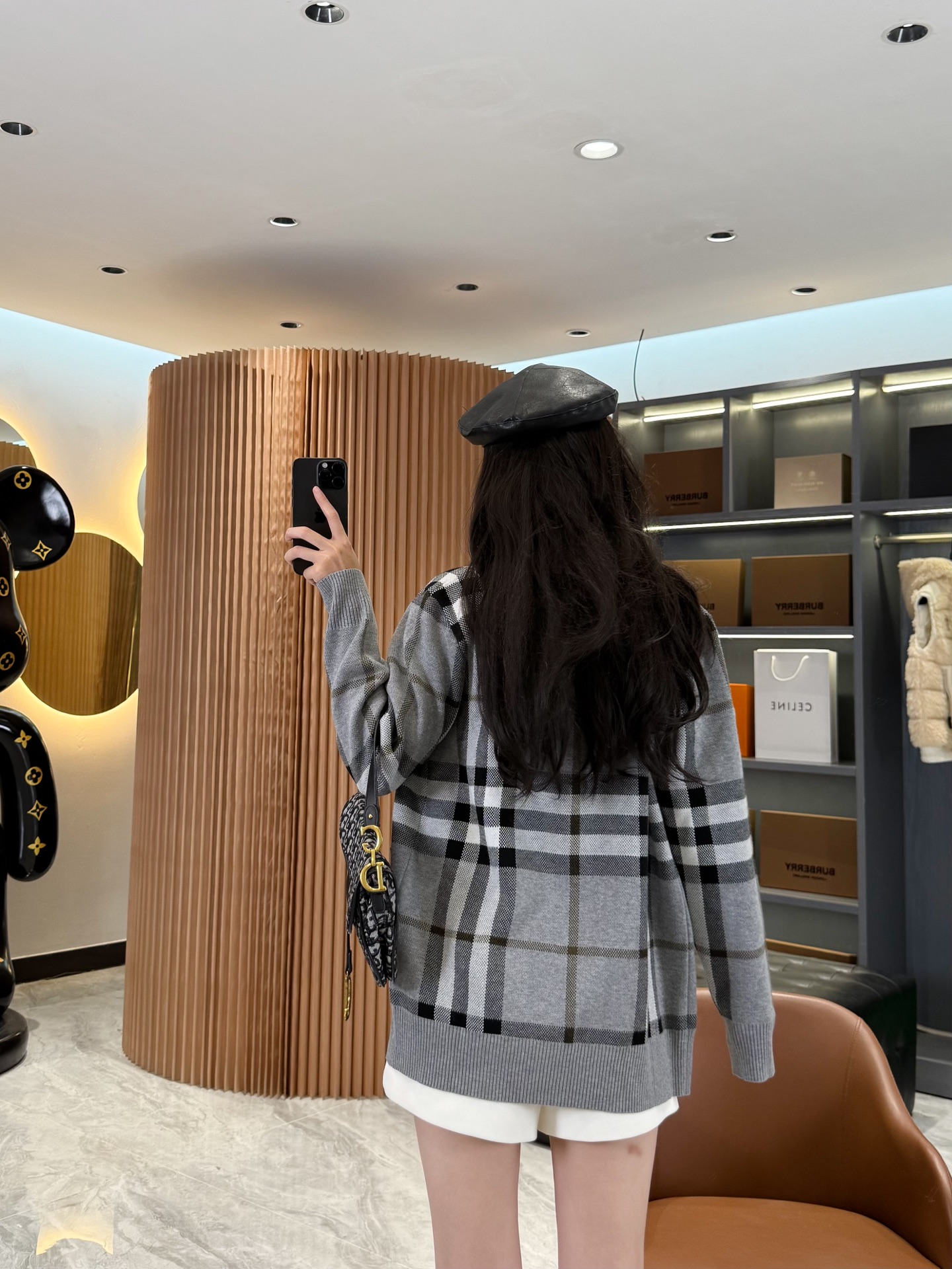 這件灰色格紋羊毛混紡提花開衫,完美體現了 BUR 一貫的經典理念,把格紋與時尚緊密結合。