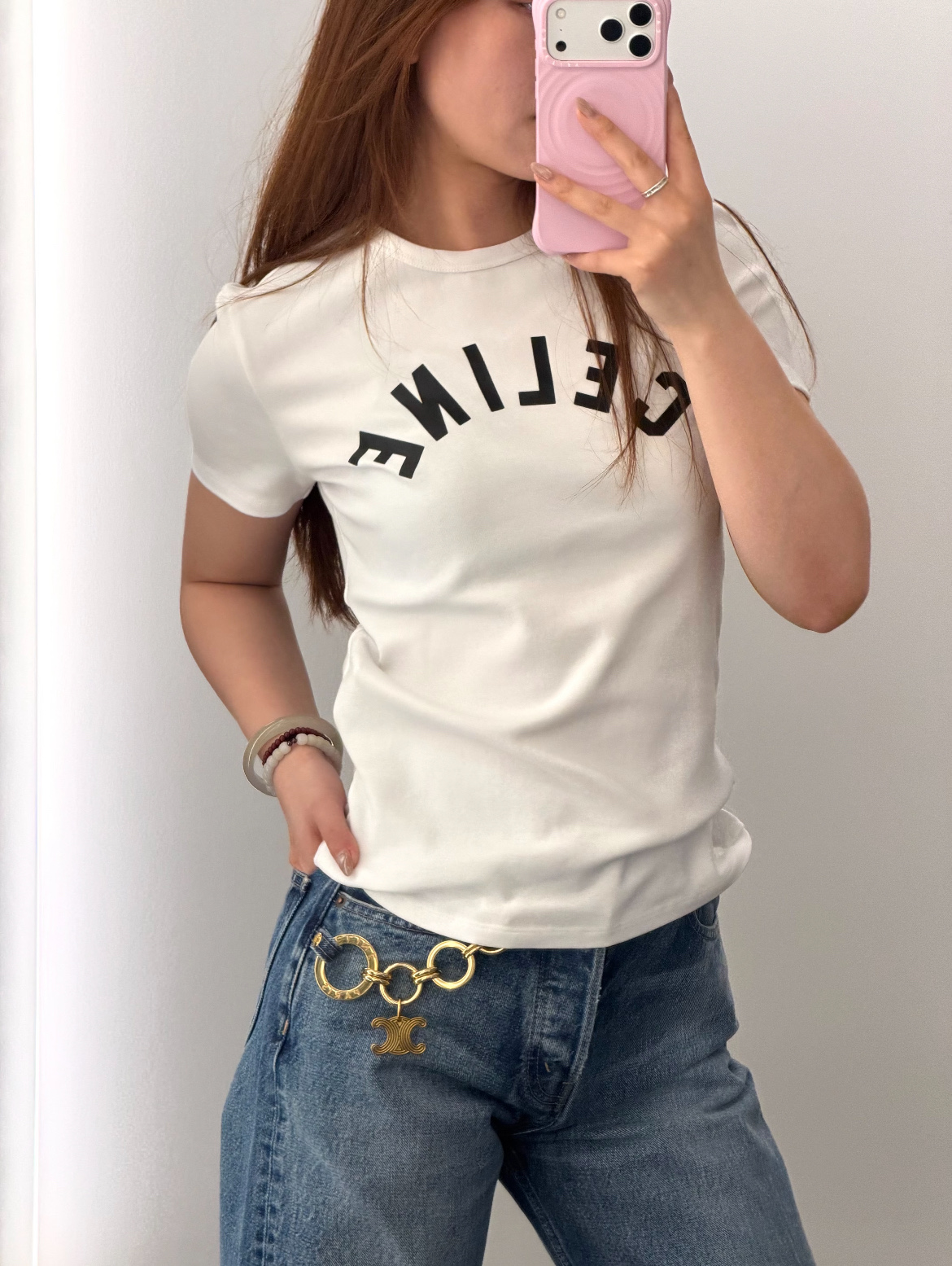 乾淨俐落的白色底,加上胸前標誌性的弧形字母設計,低調中帶點法式氛圍,隨便一穿就很有型。