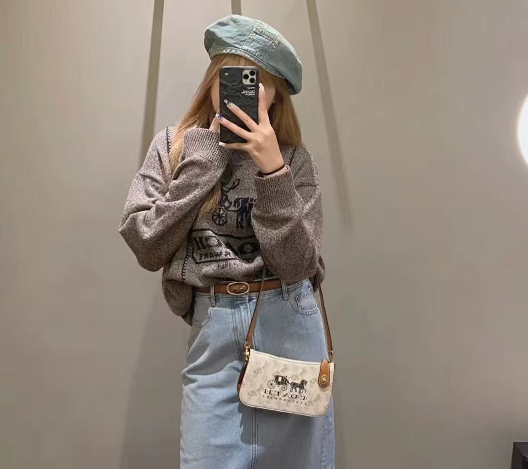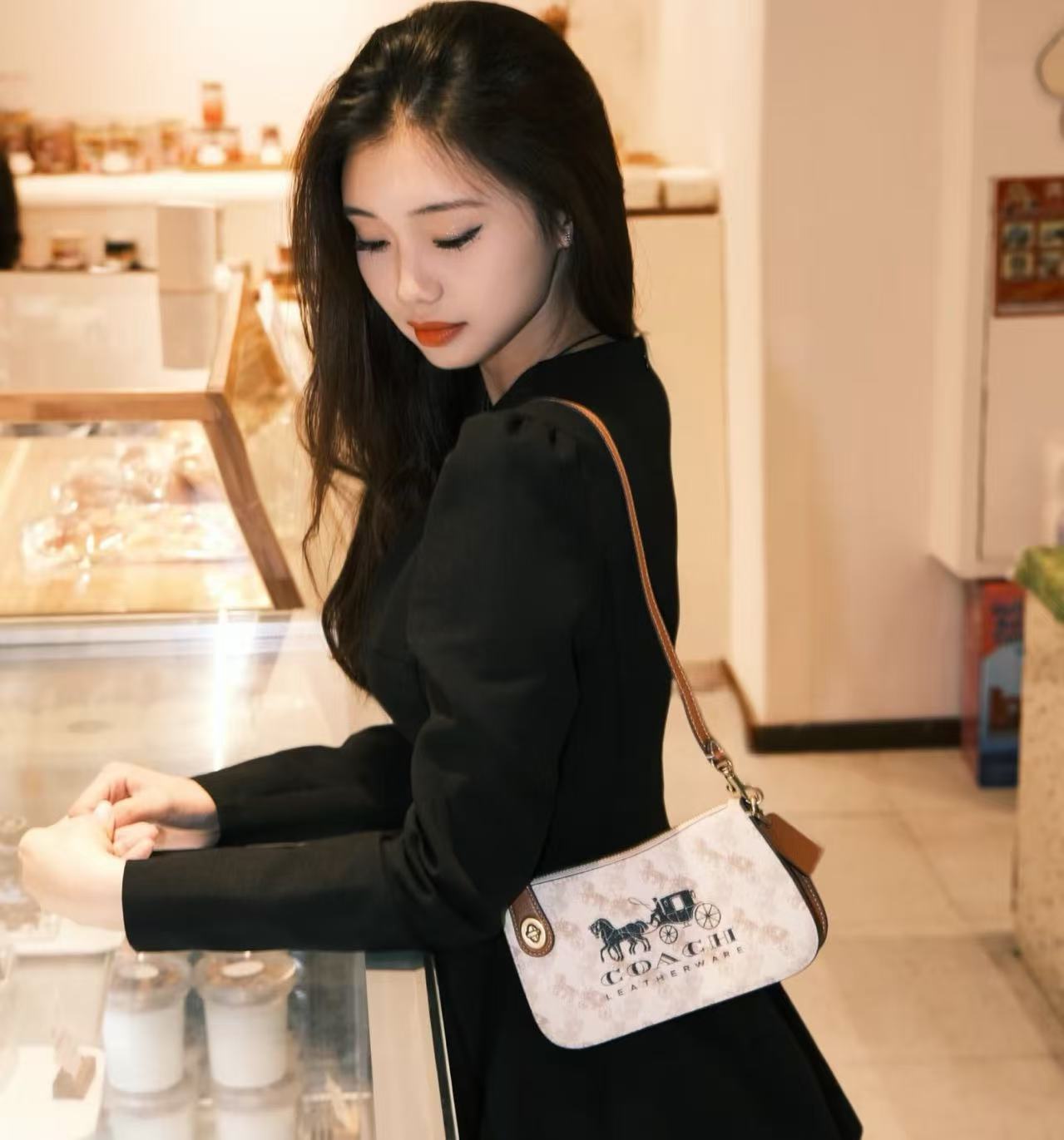 ✨ 設計亮點:經典馬車印花與實用腋下包廓形