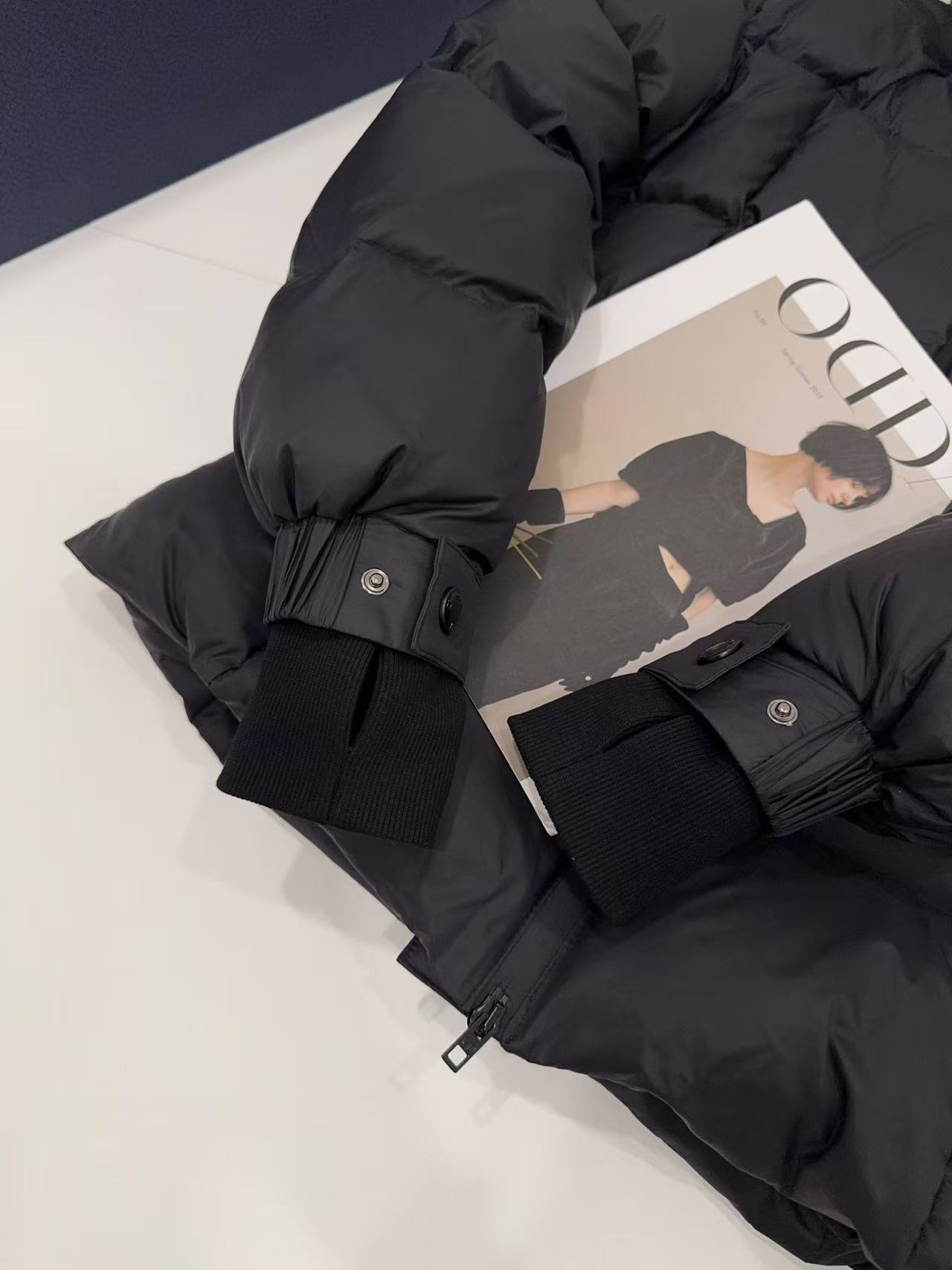 材料質感:外層面料具備細膩的啞光質感,觸感柔軟糯合卻不會輕易塌陷。這種高級的霧面光澤,讓整件羽絨服在視覺上展現出沉穩且內斂的氛圍。