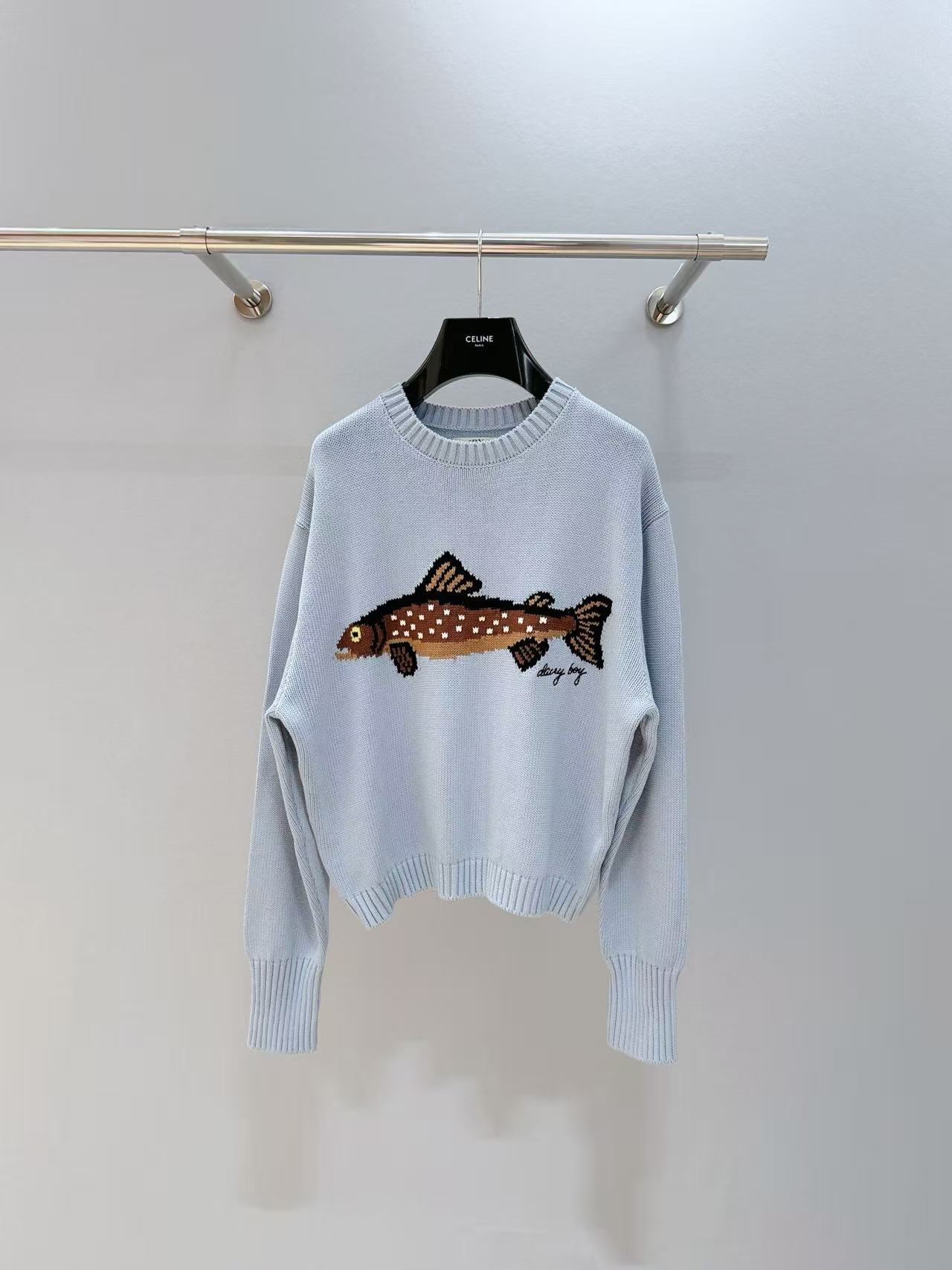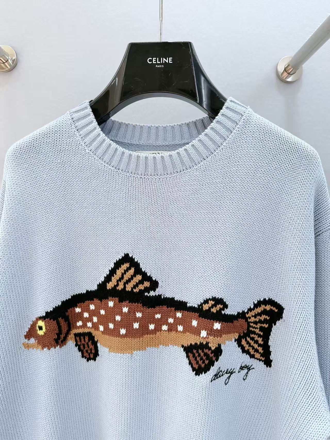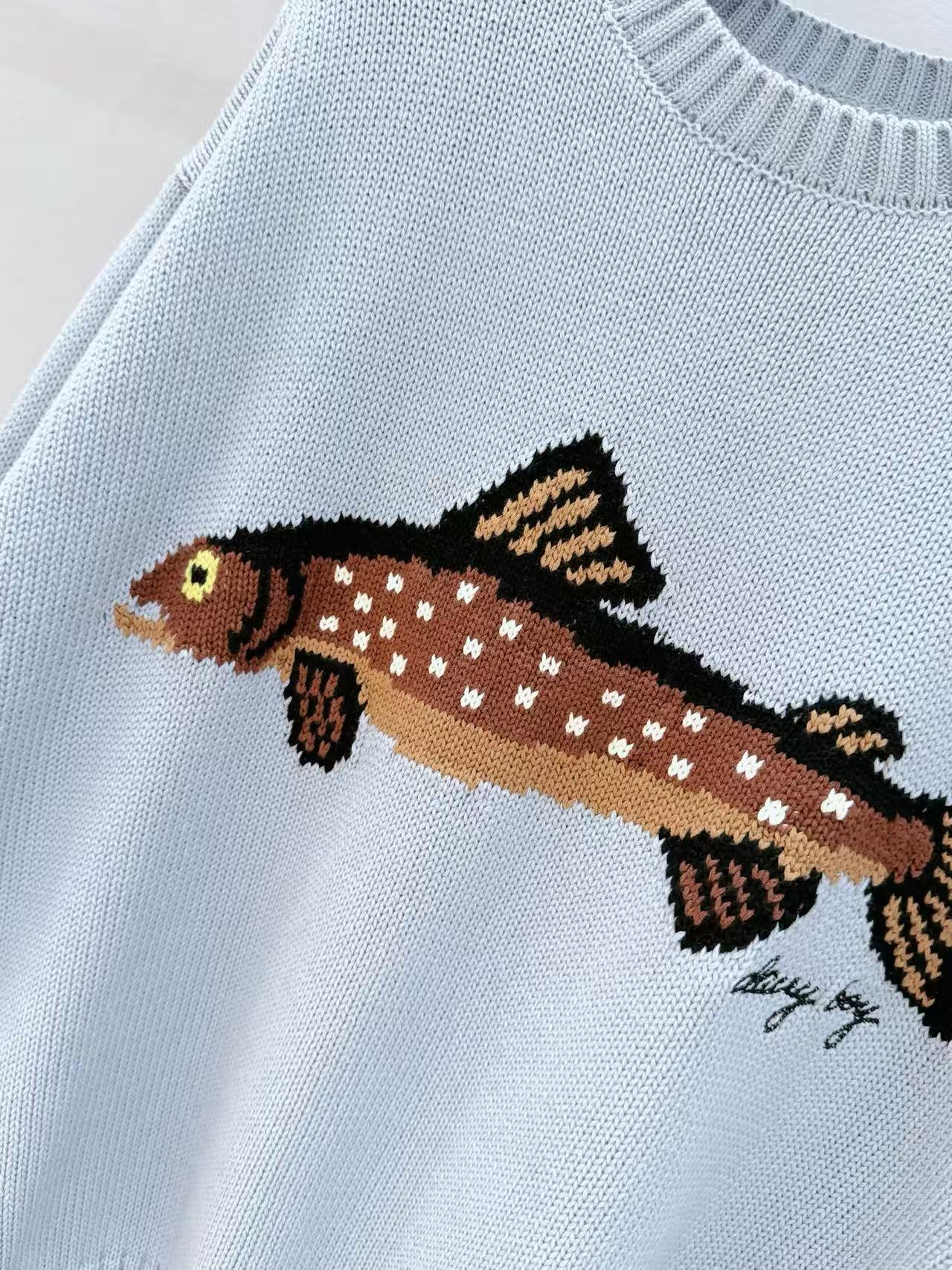 2025早秋 D家 手繪嵌織魚圖案落肩毛衣