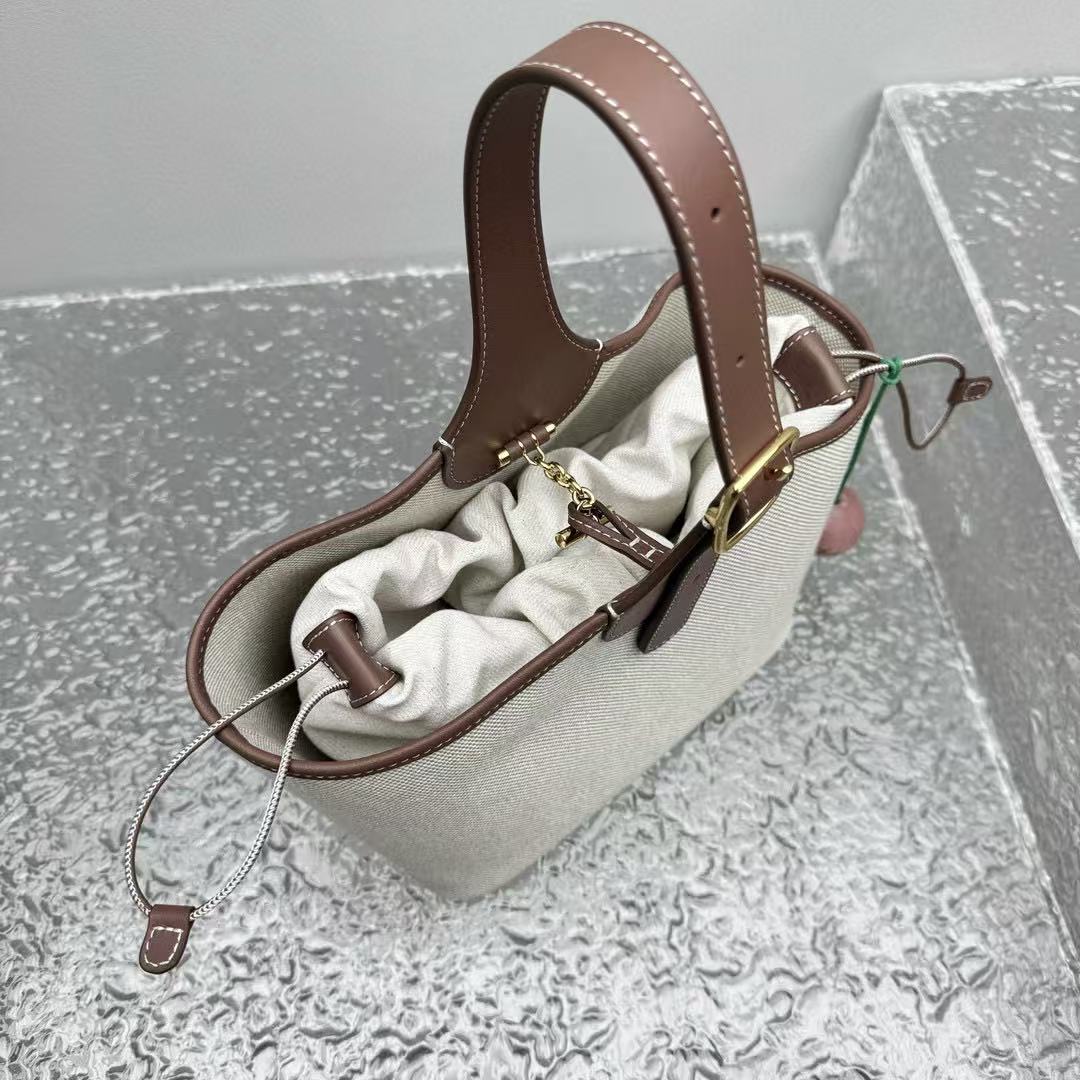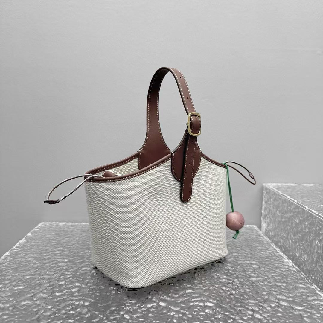 包身採用高質感帆布製成,質地挺括卻不厚重;手柄部分選用細緻皮革打造,並可自由調節長度。