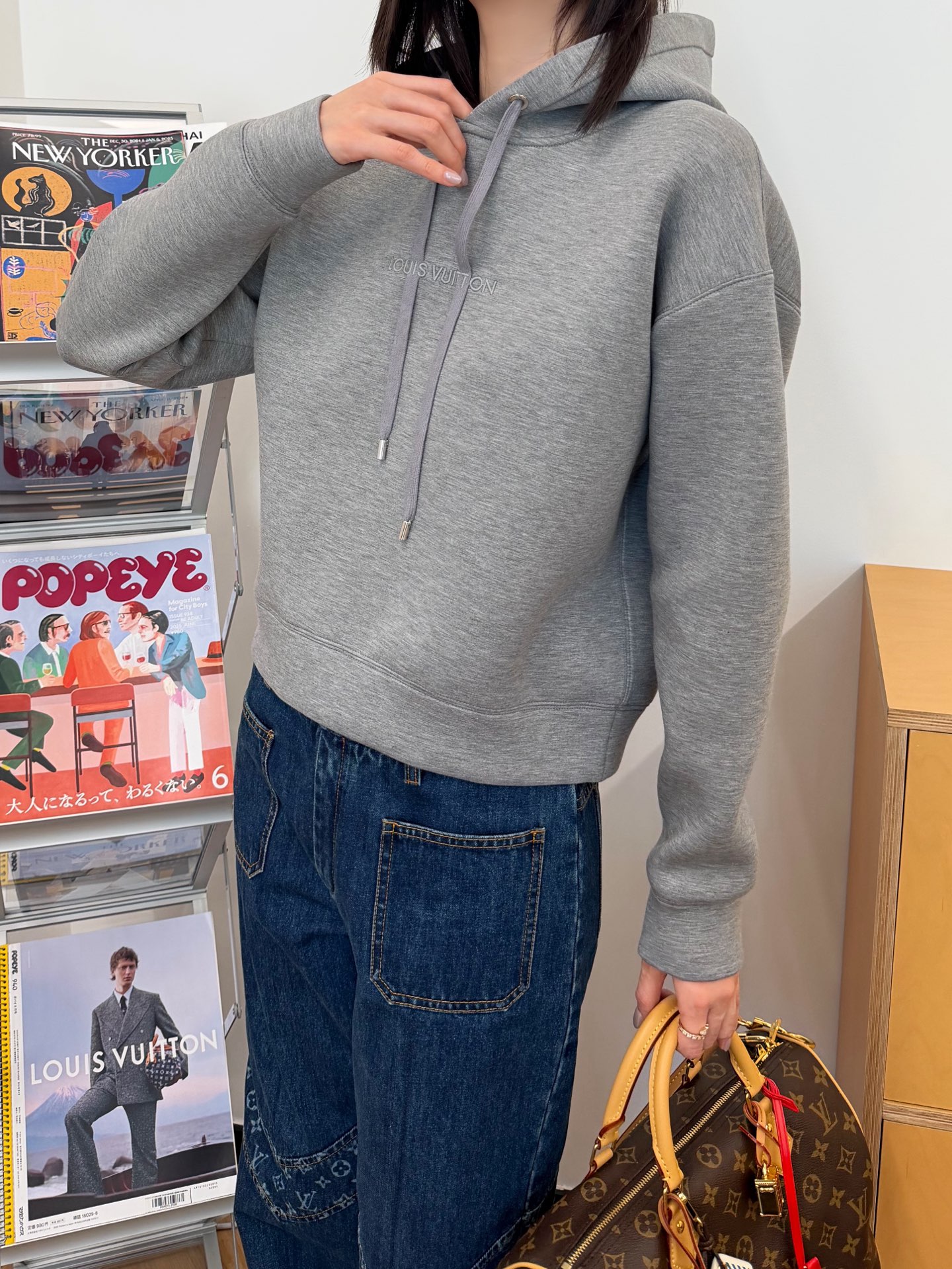胸前以同色系刺繡點綴,低調卻很有層次感,刺繡一路延伸到抽繩設計,視覺上自然拉出線條感,讓整件帽T看起來更有立體度。