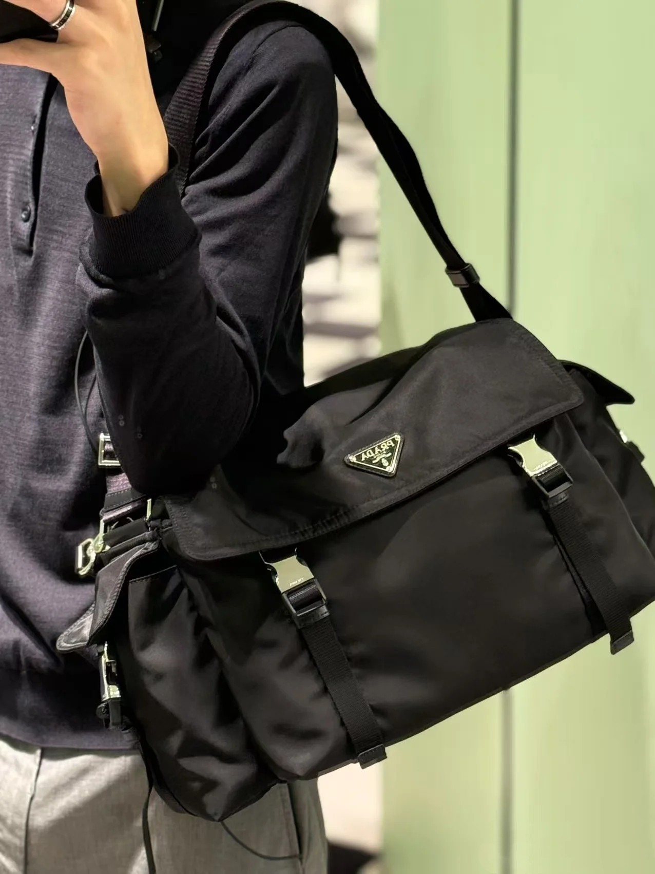 2025秋冬新品 P家 再生尼龍斜挎郵差包