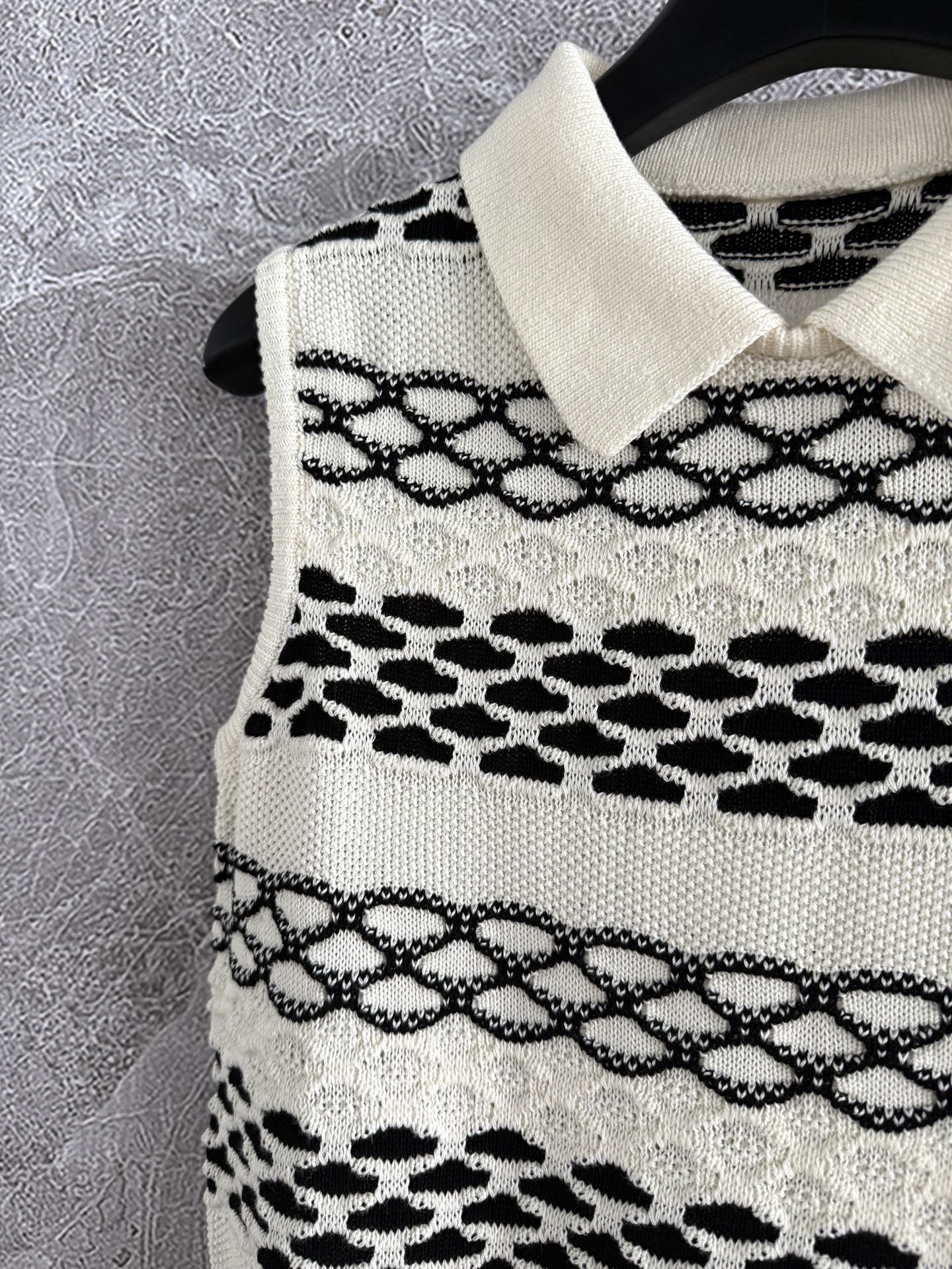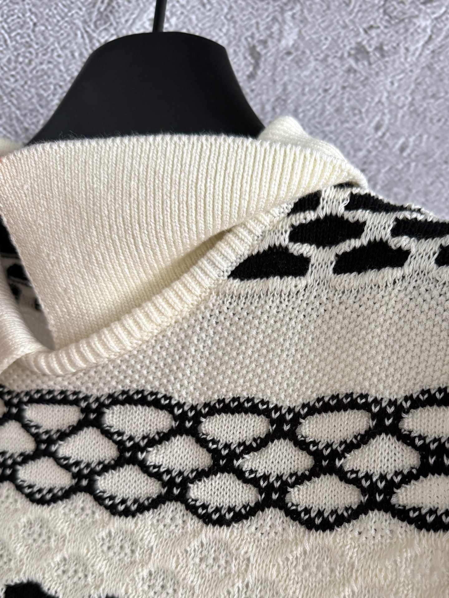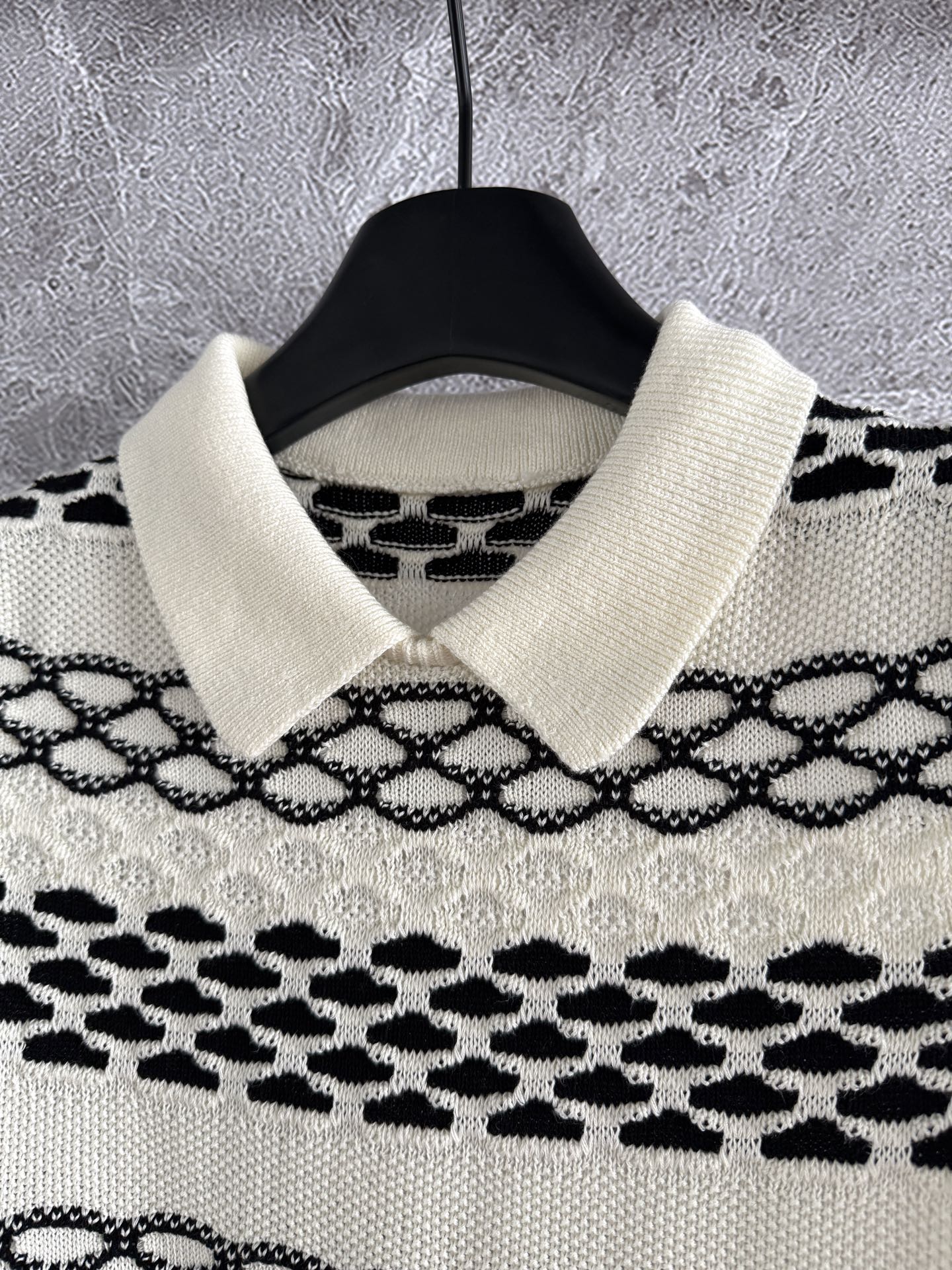 水波紋提花搭配撞色翻領,細節非常耐看,乍看低調卻充滿質感。仔細看,提花紋理像是一顆顆小愛心嵌織其中,精緻卻不浮誇,整體帶有一種溫柔而知性的氣息。
