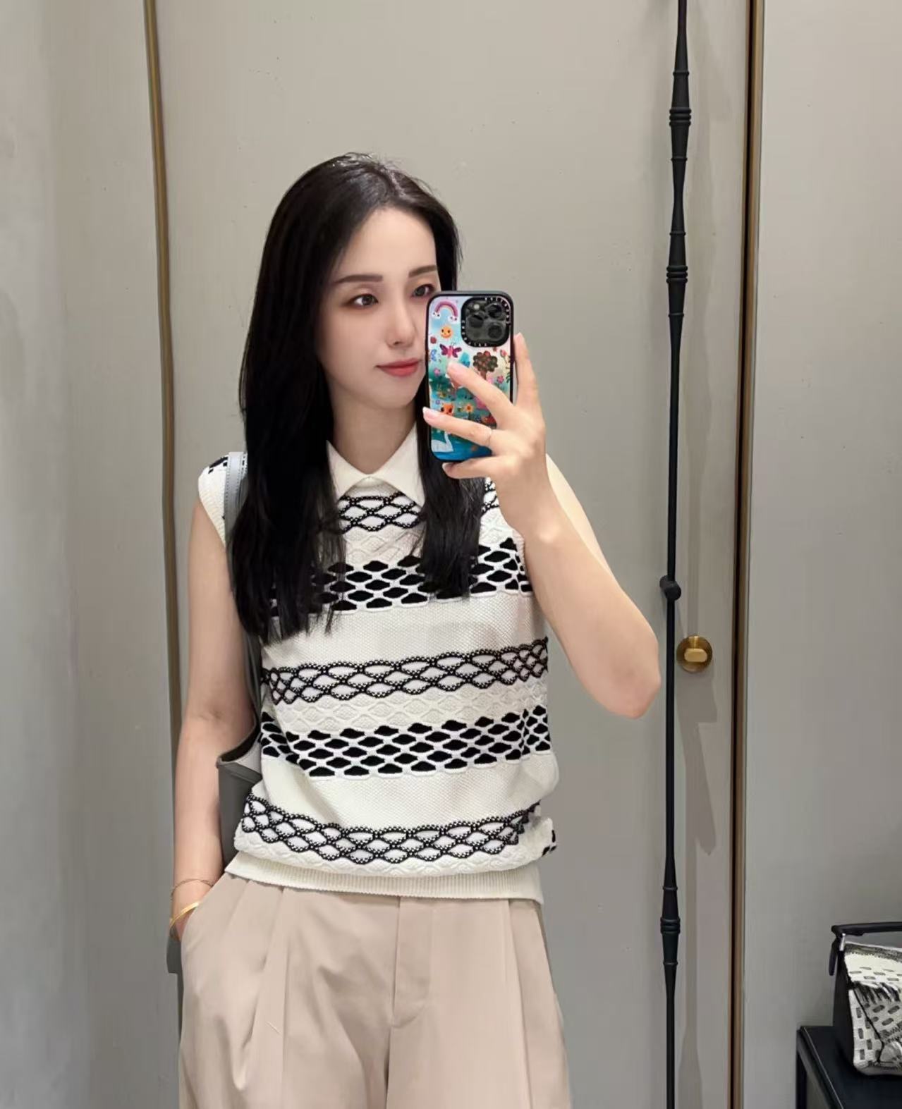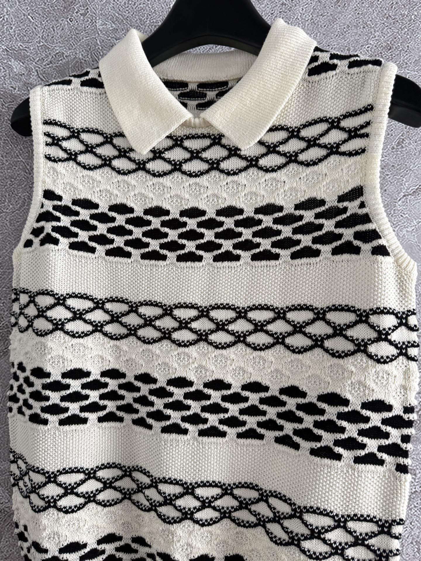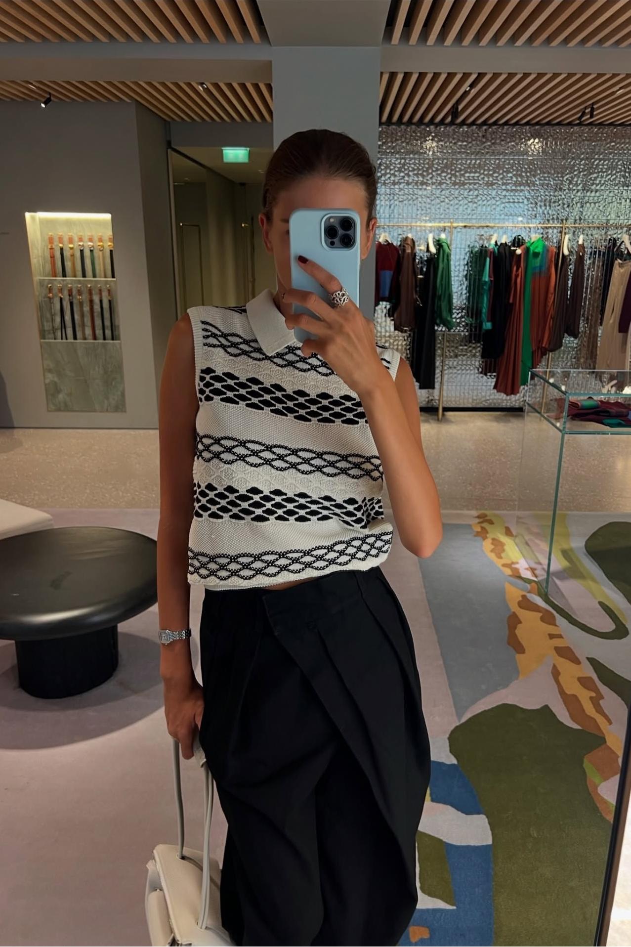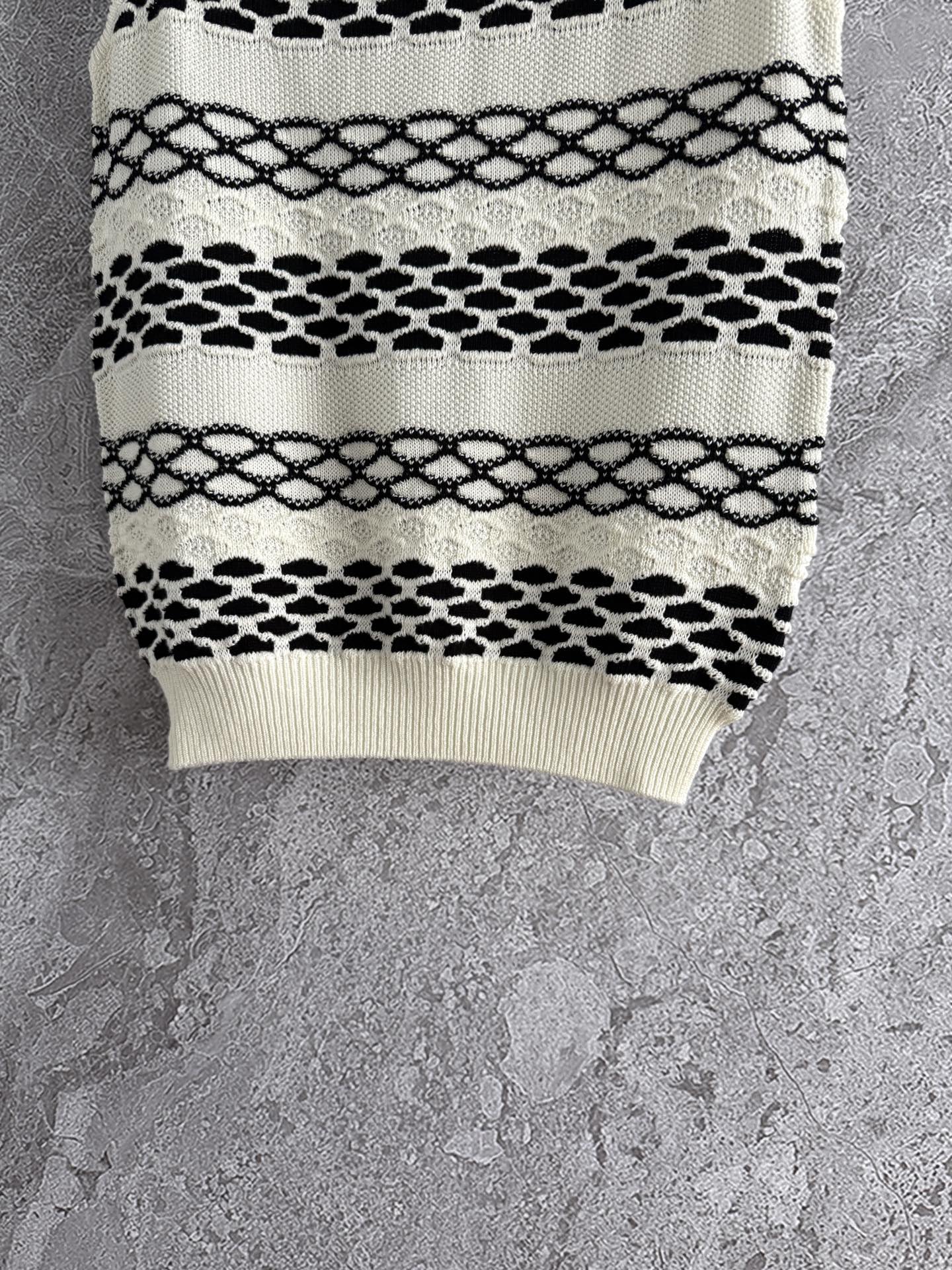 水波紋提花搭配撞色翻領,細節非常耐看,乍看低調卻充滿質感。仔細看,提花紋理像是一顆顆小愛心嵌織其中,精緻卻不浮誇,整體帶有一種溫柔而知性的氣息。