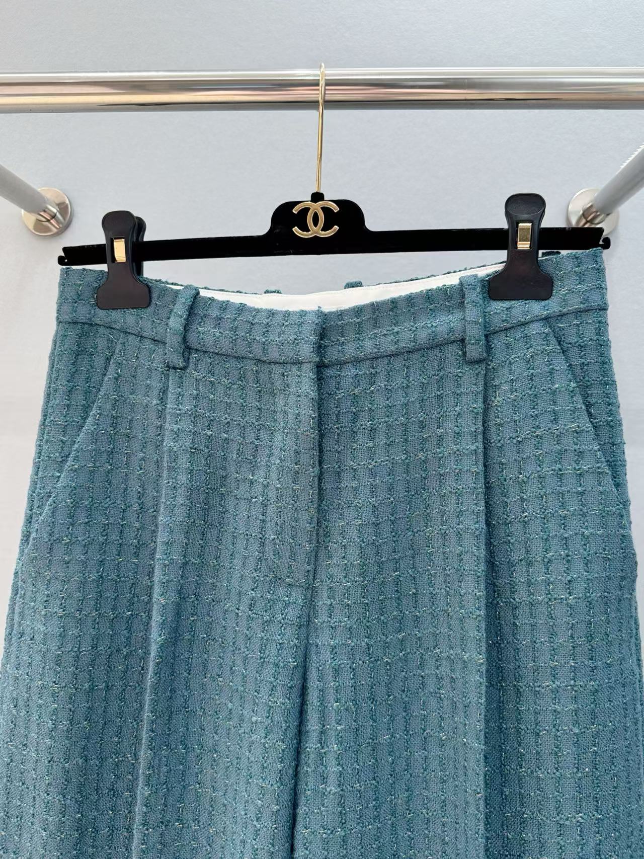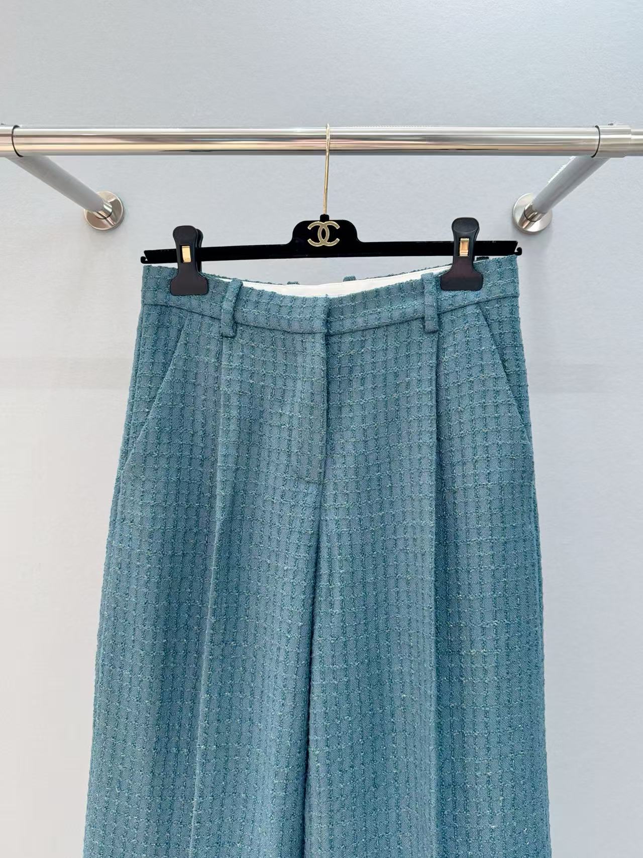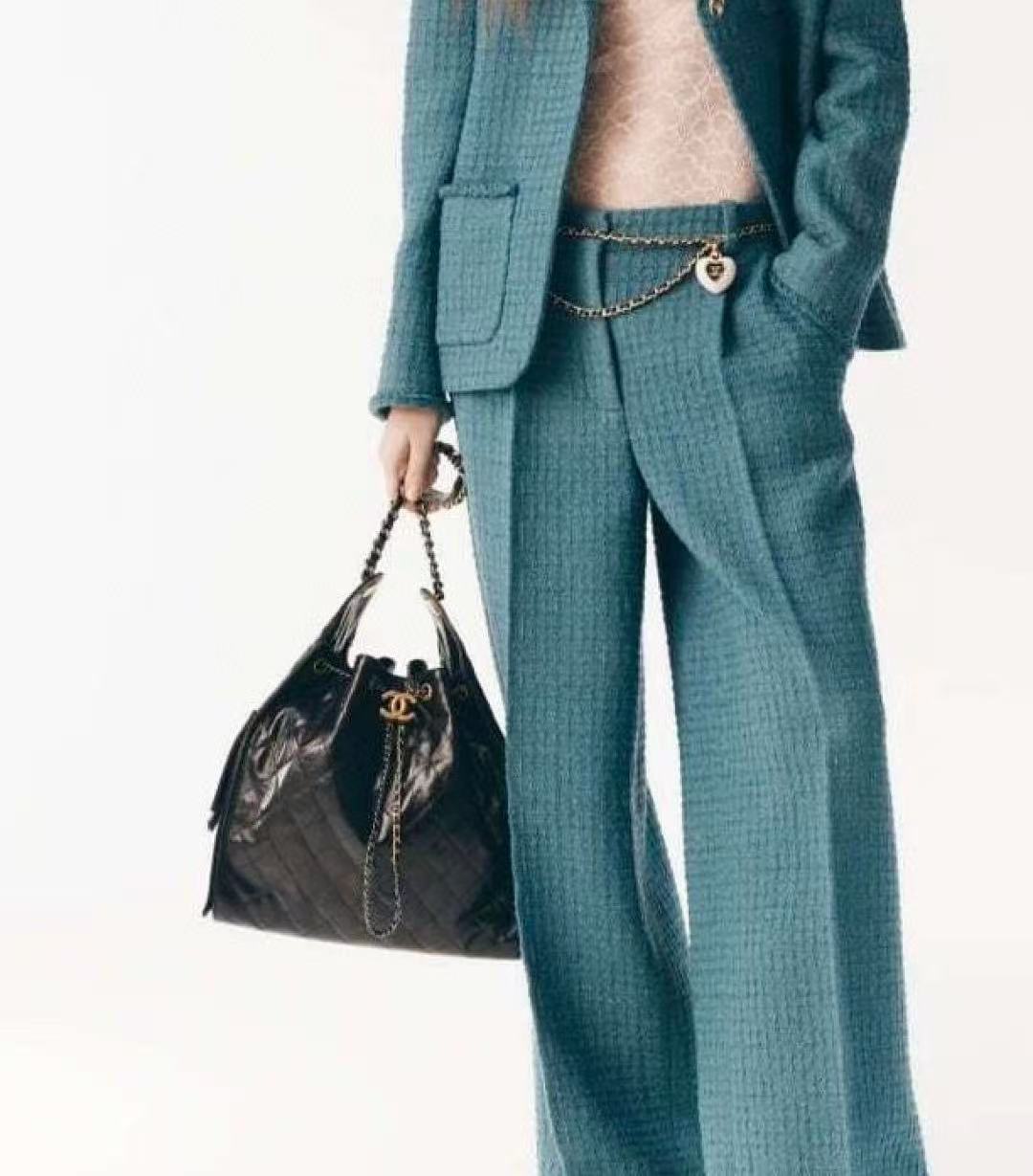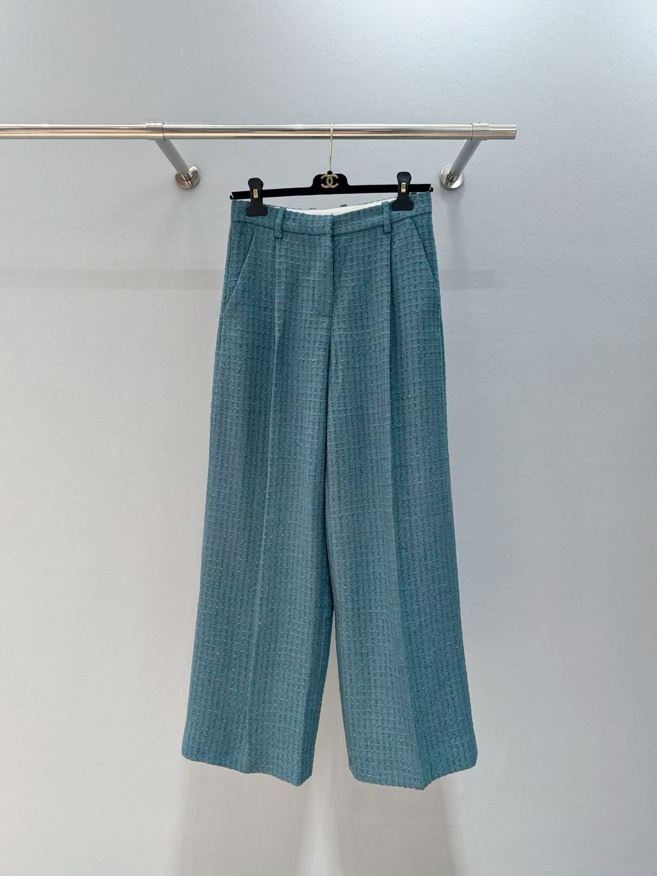 2025早秋 C家 復古肌理感孔雀綠西裝長褲