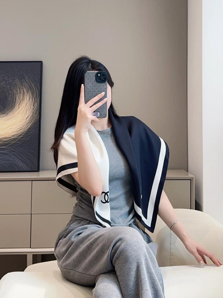 2026春夏新品 C家 對稱黑白絲巾