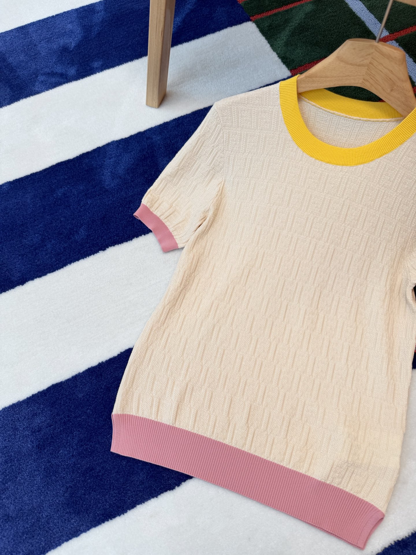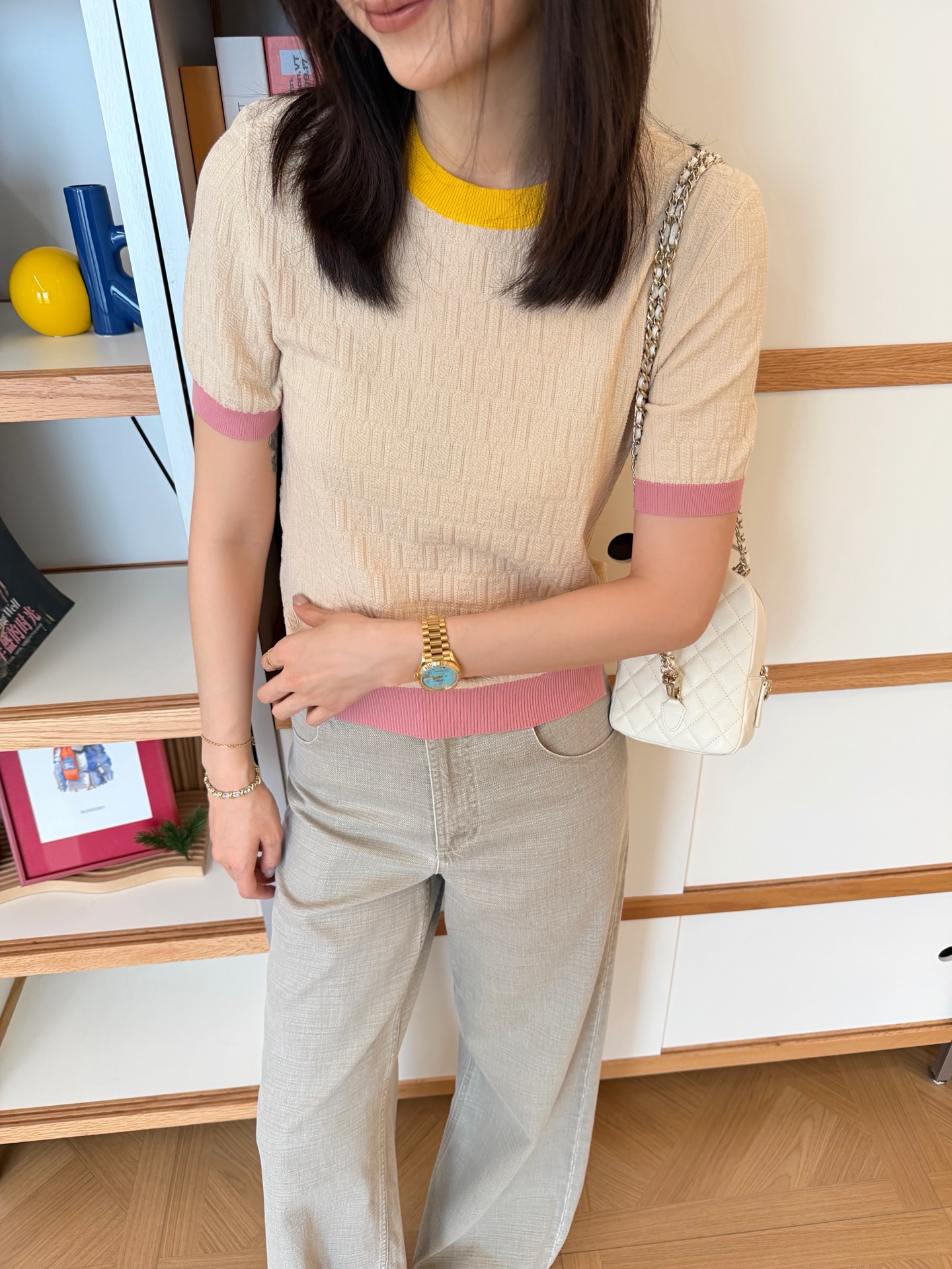 這件屬於那種「看似簡單,但穿上會默默被稱讚」的類型。整體設計走極簡路線,卻透過細膩的撞色搭配,讓視覺更有層次感,輕鬆穿出溫柔又帶點高級的氛圍。