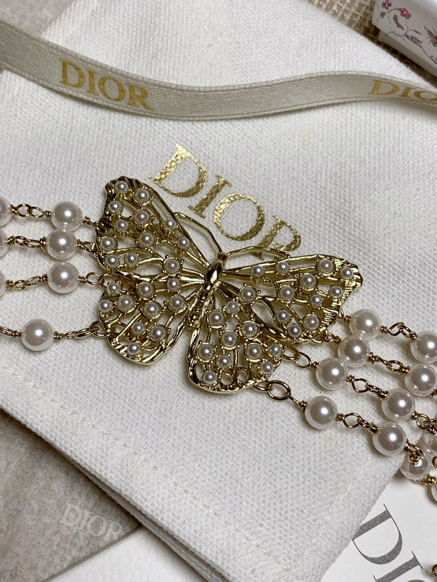 2025早秋新款 D家 四層珍珠鏤空CD蝴蝶項鍊